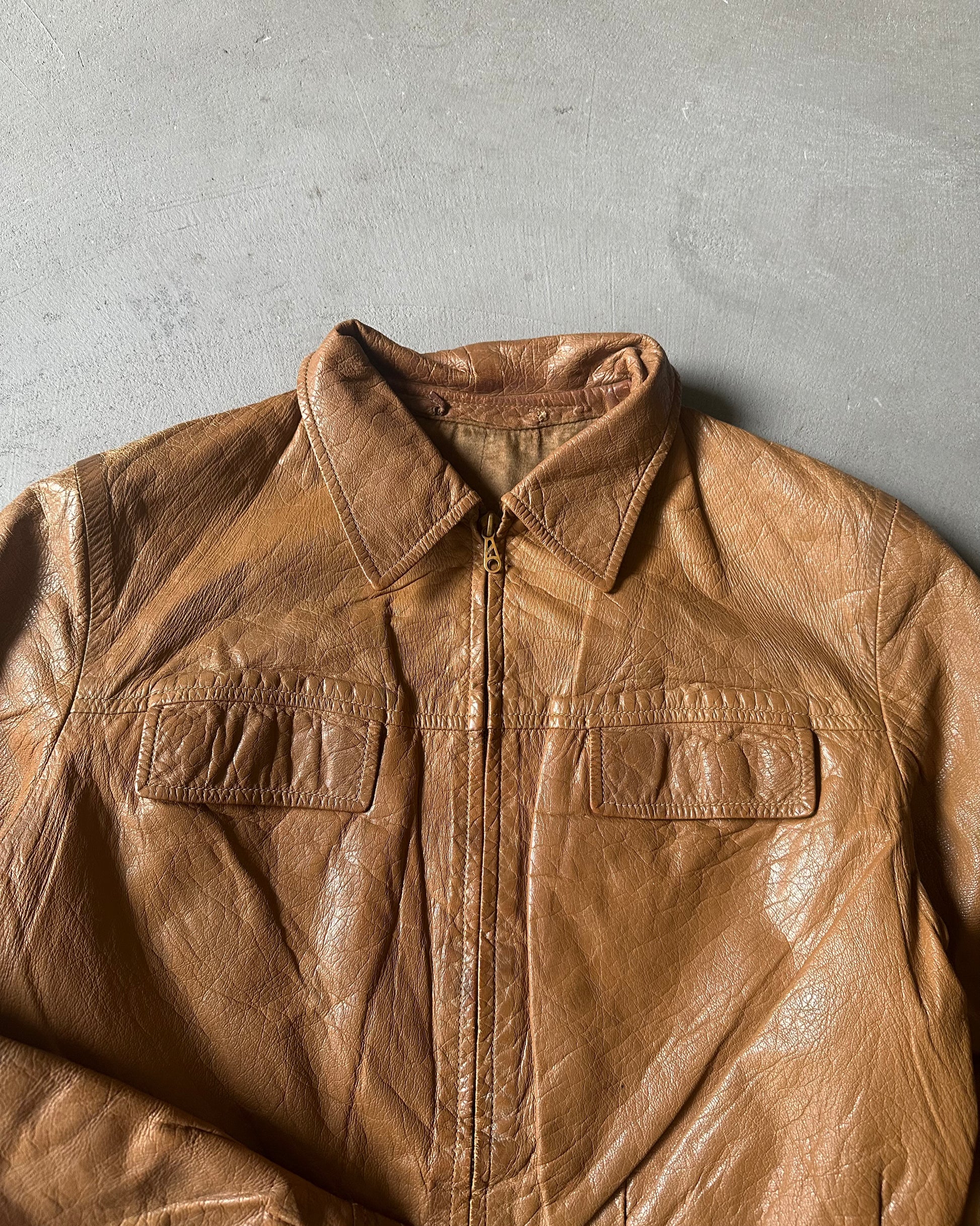 Années 70 - Veste en cuir marron clair vieilli pour femme - (F)XS