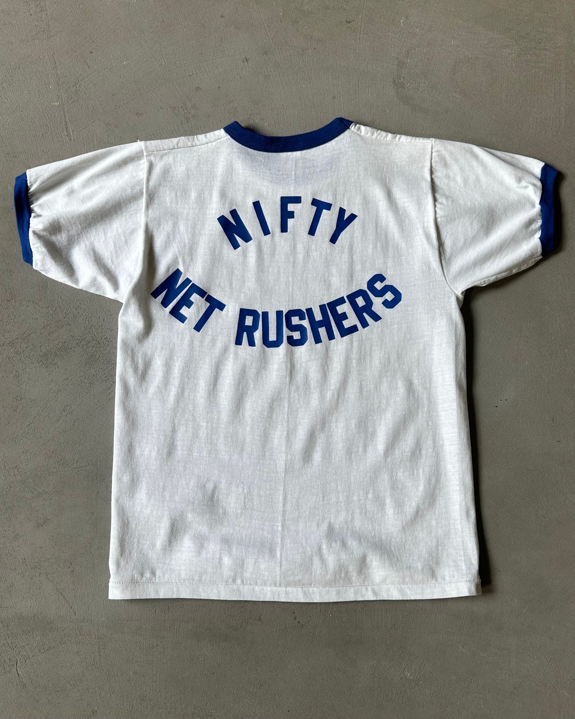 Années 70 - T-shirt Ringer Nifty Net Rushers Blanc/Bleu - S