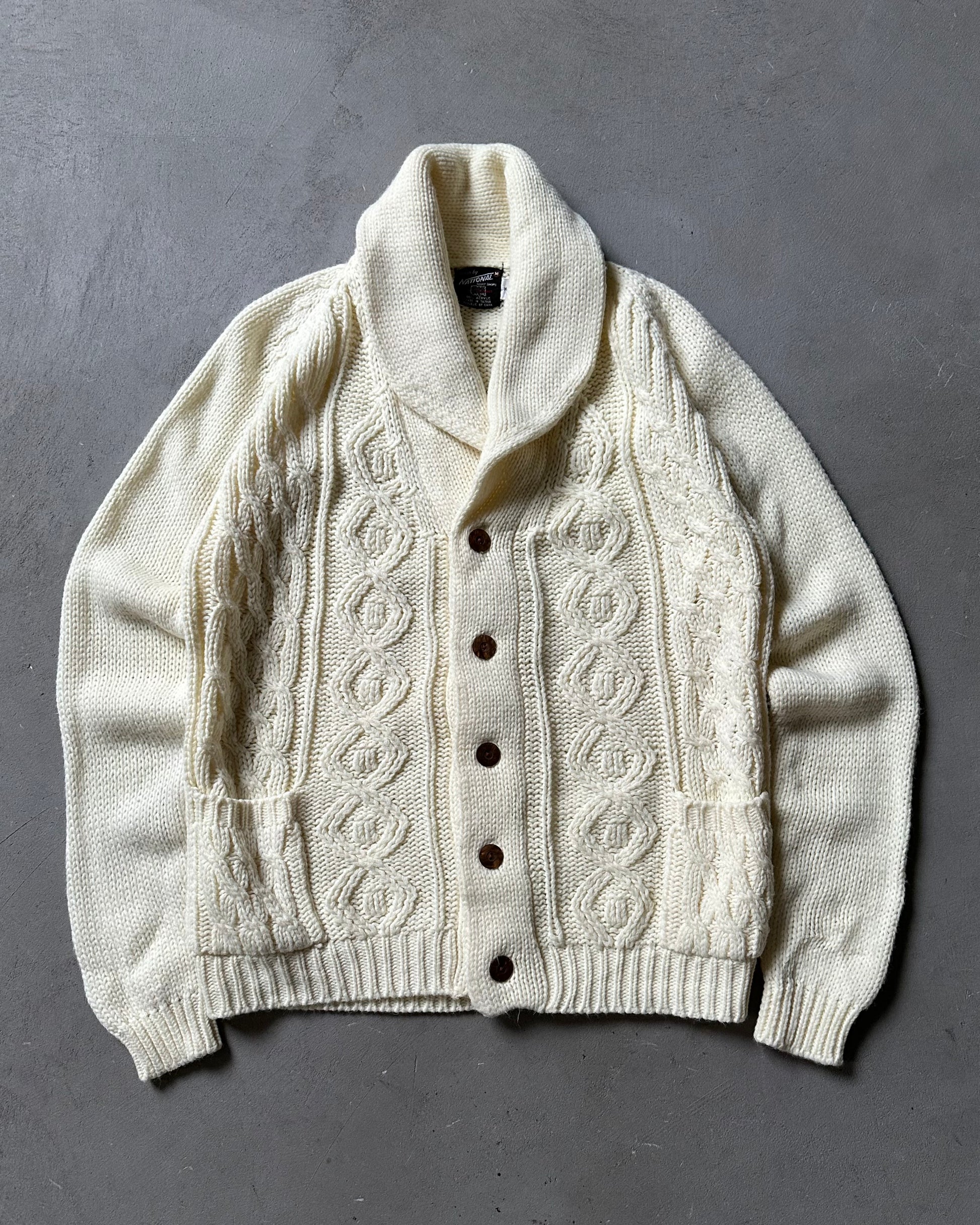 Années 80 - Cardigan en maille torsadée crème - Taille M