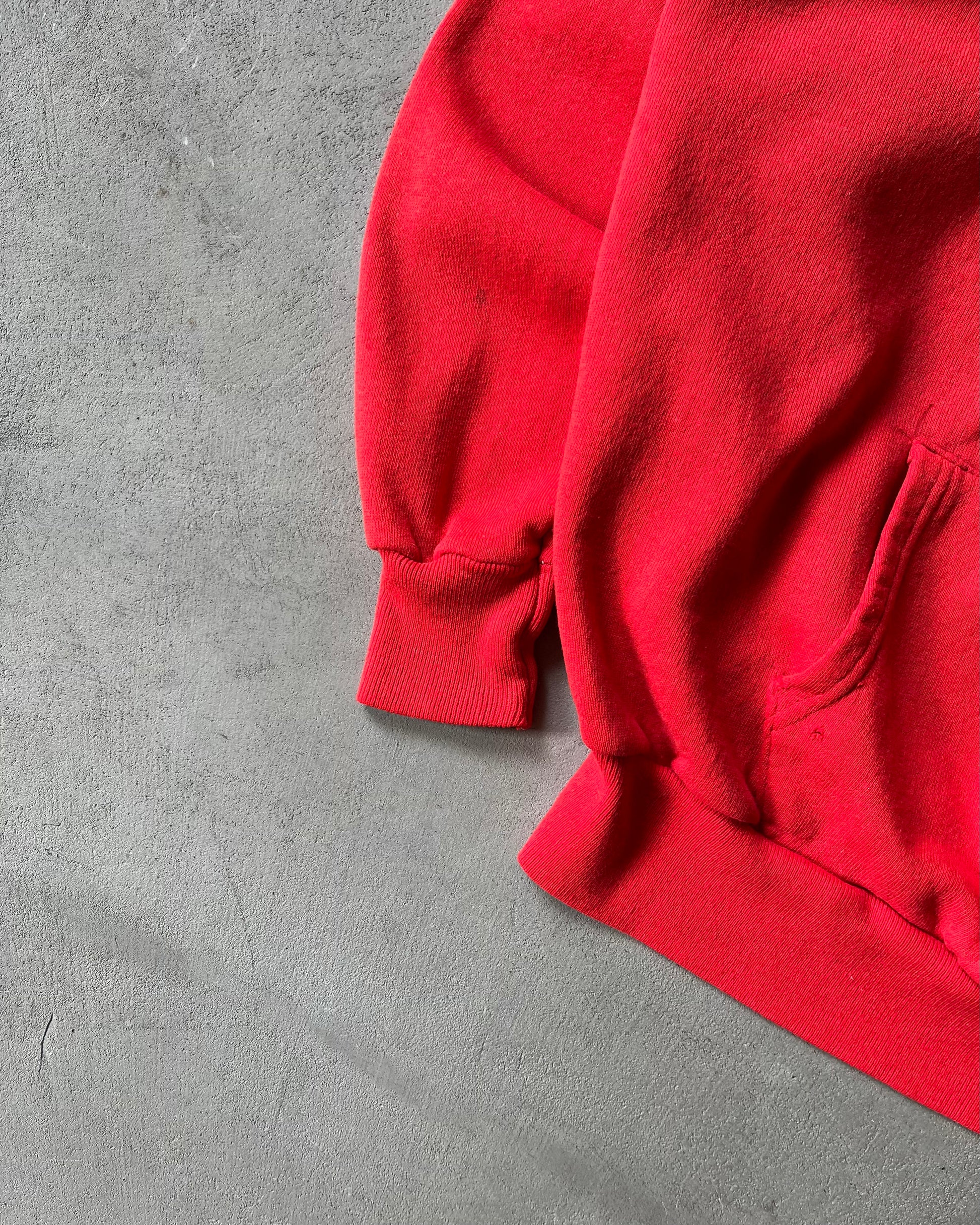 Années 80 - Sweat à capuche rouge vieilli (manches raglan) - M/L