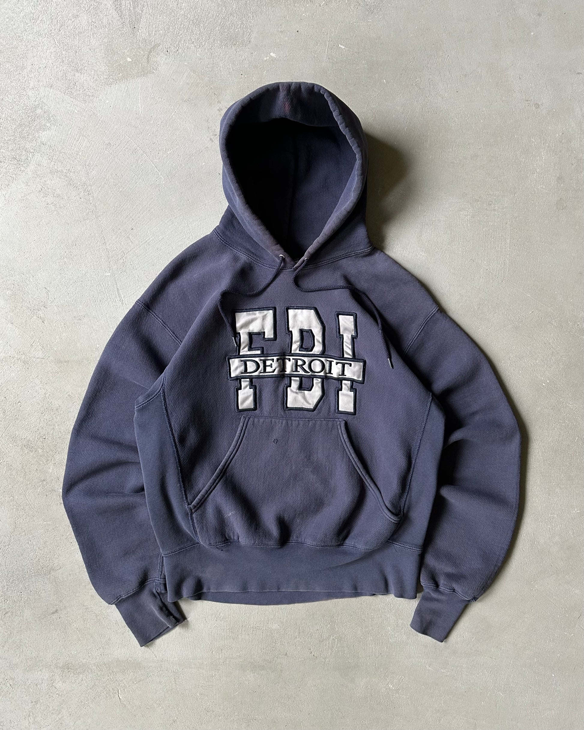 Années 90 - Sweat à capuche FBI bleu marine vieilli - M