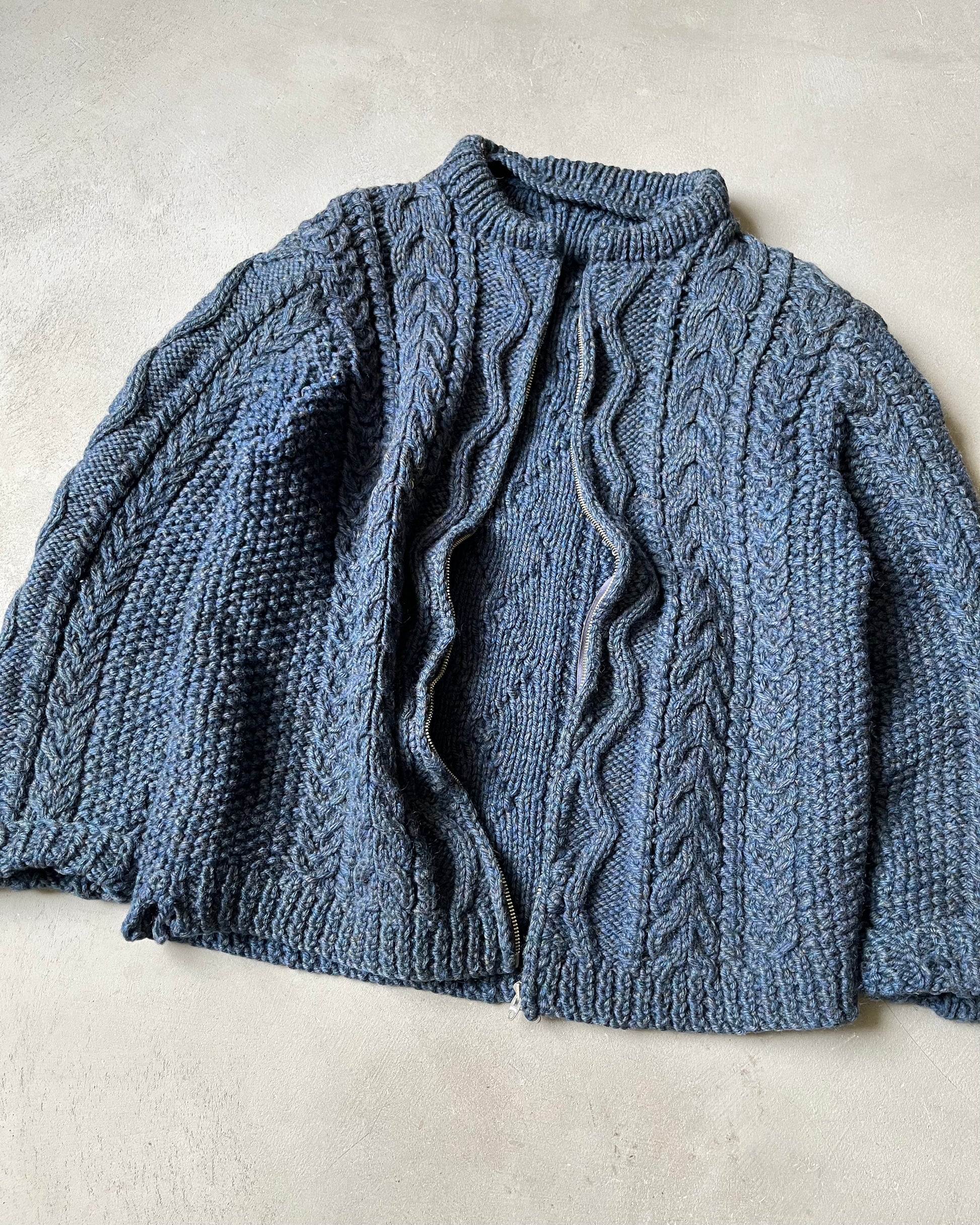 1960s - Blue Handknit Zip Up Sweater - M/L