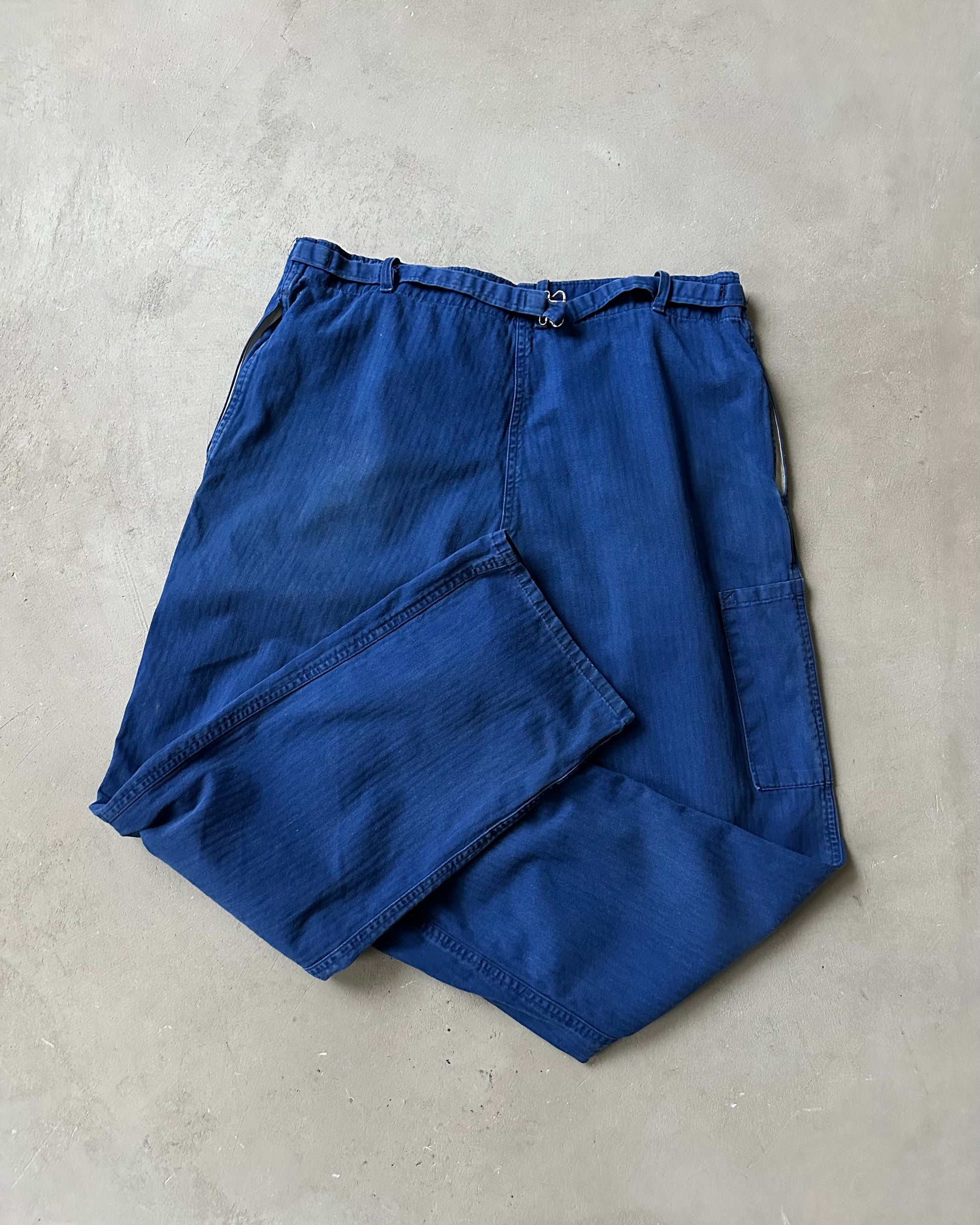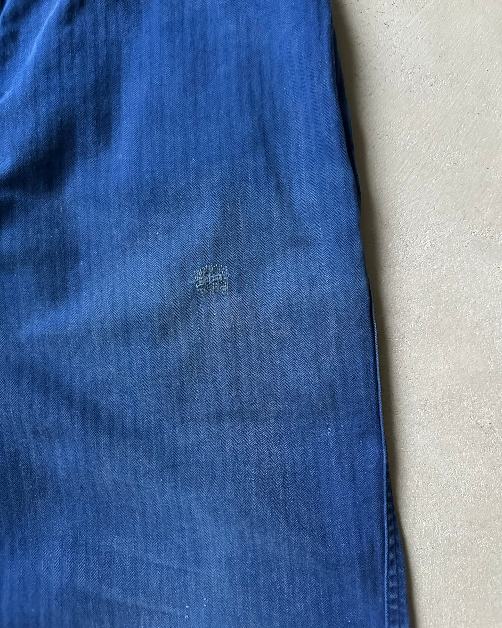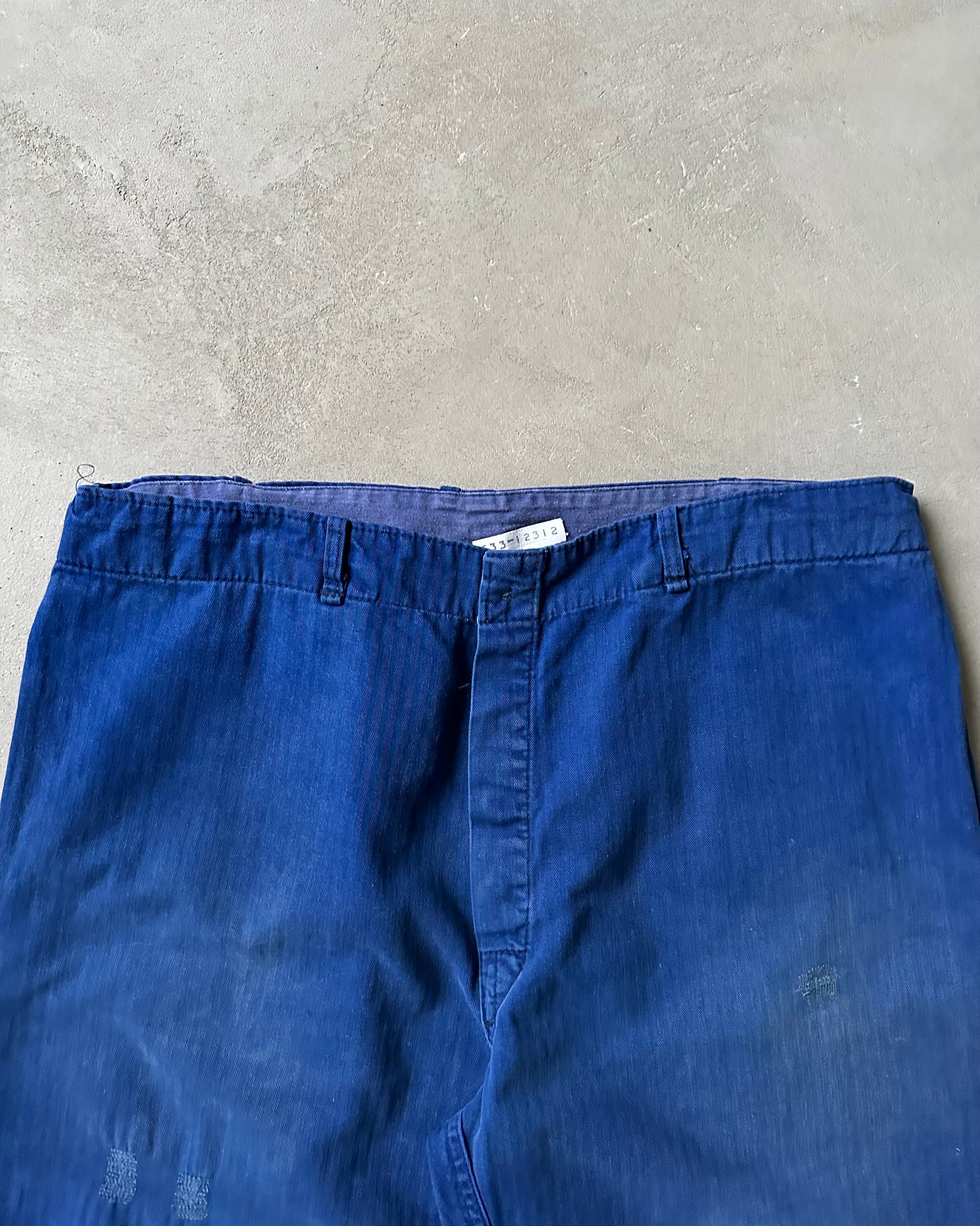 1970s - Blue HBT Repaired Euro Work Pants - 35x30