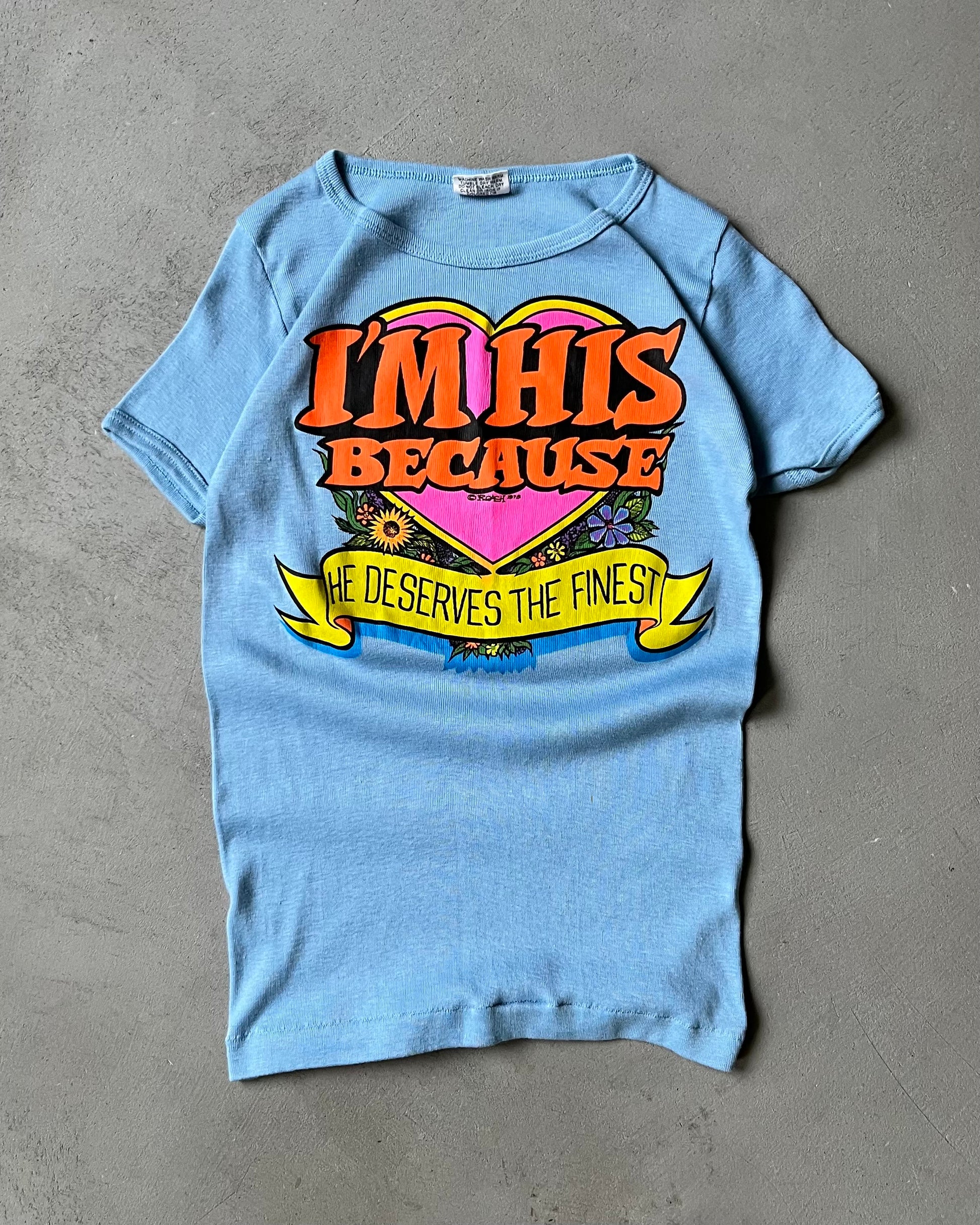 1970s - Blue "I'm His" Ringer T-Shirt - (W)S