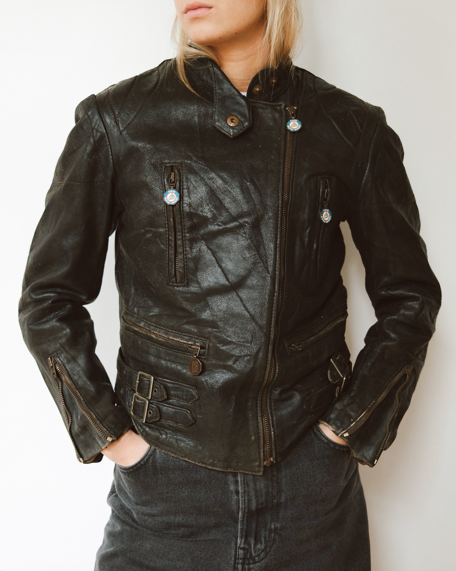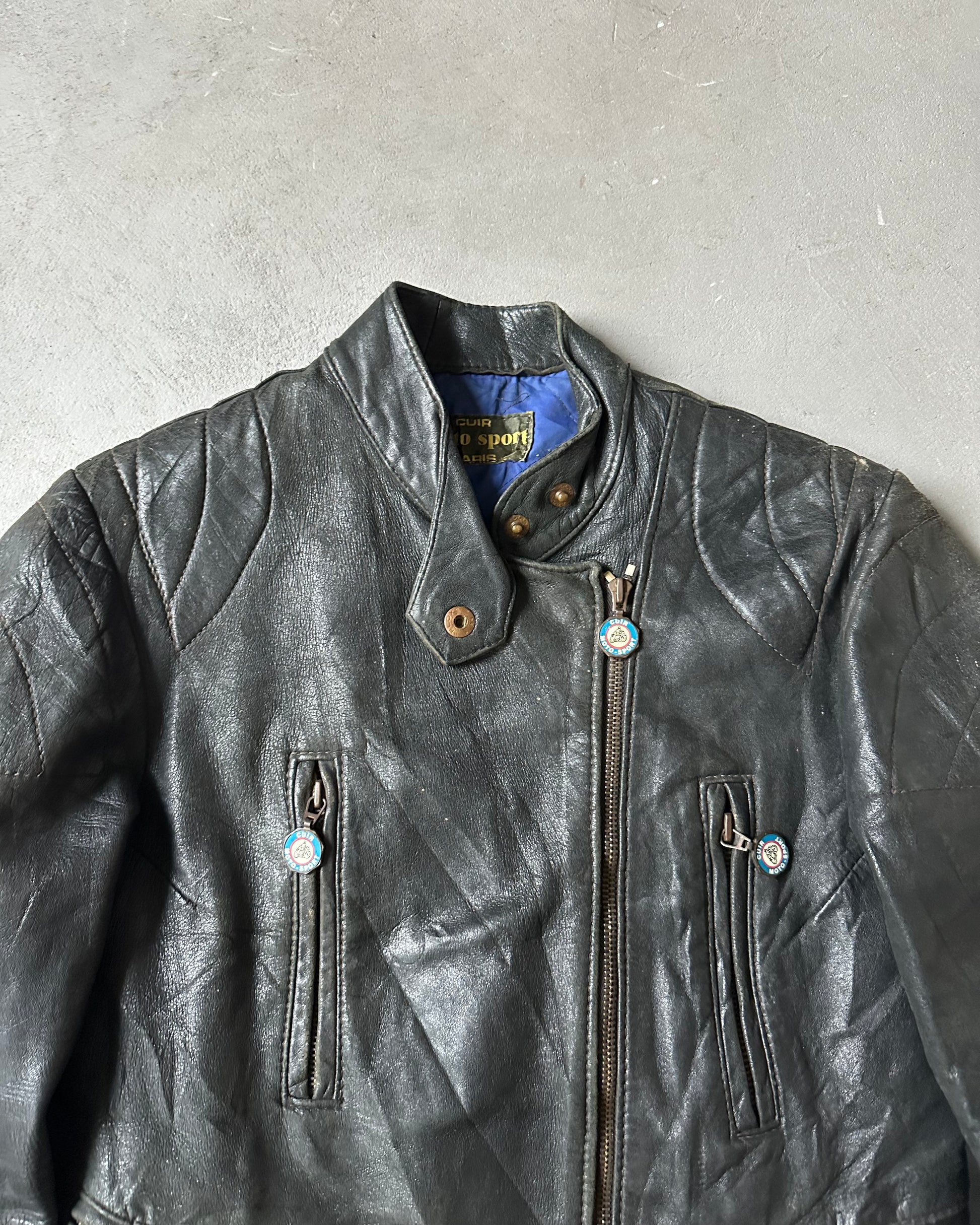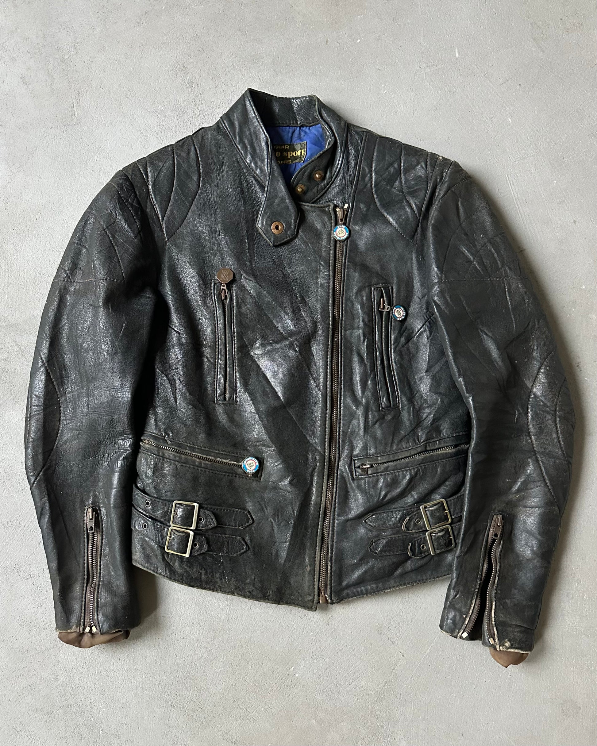 1970s - Distressed Black Biker Leather Jacket - (W)XS
