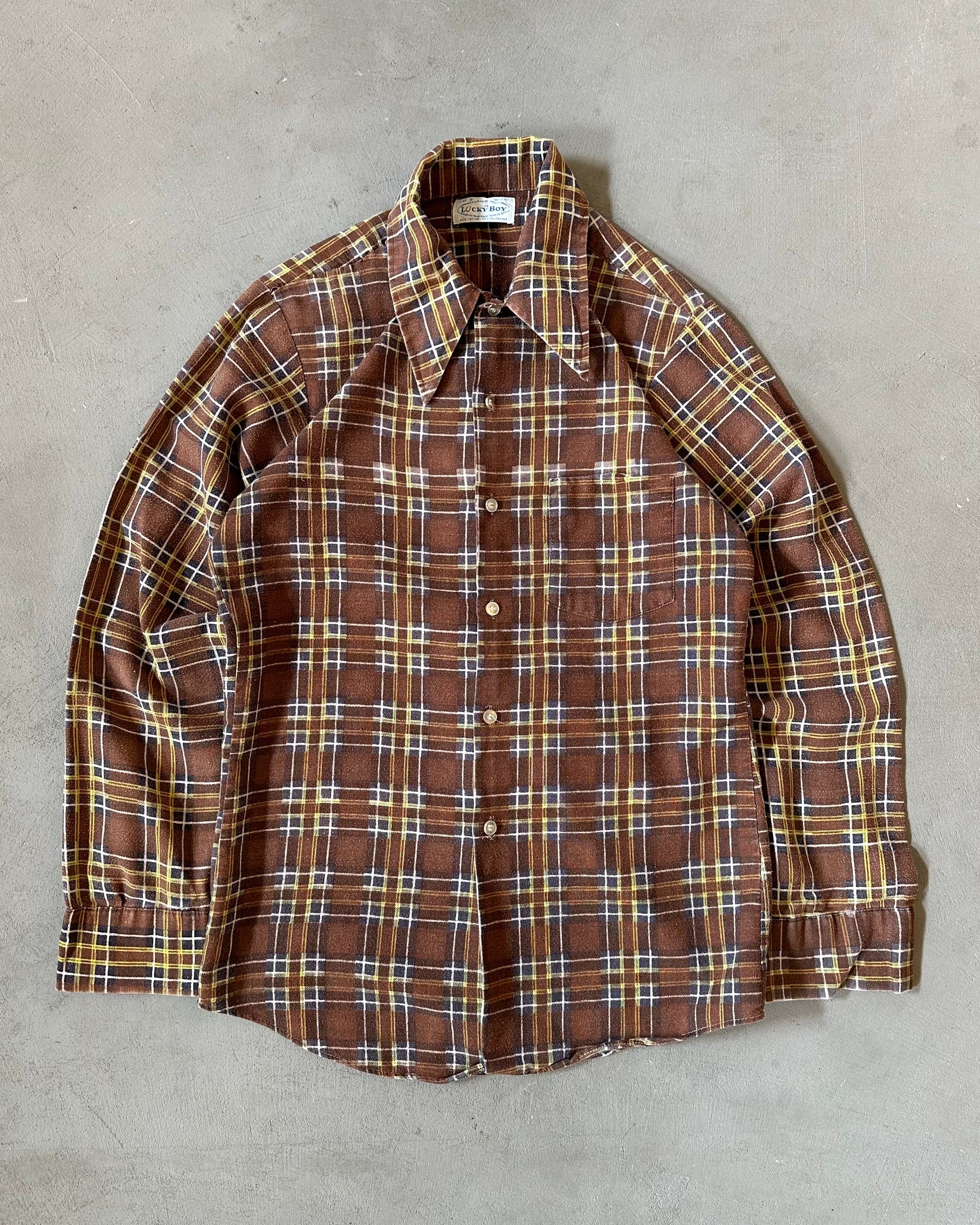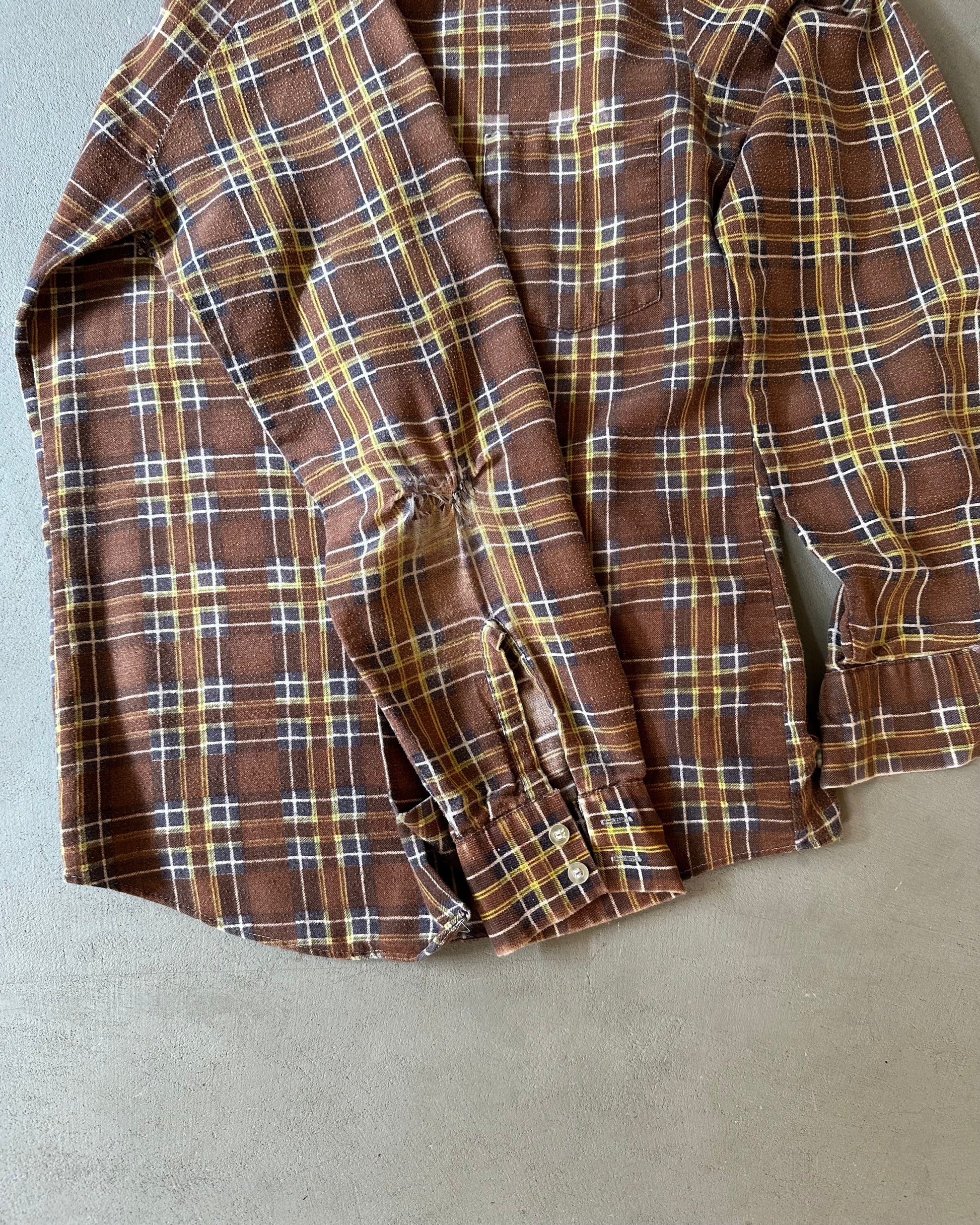1970s - Distressed Brown/Yellow Plaid Flannel - XS