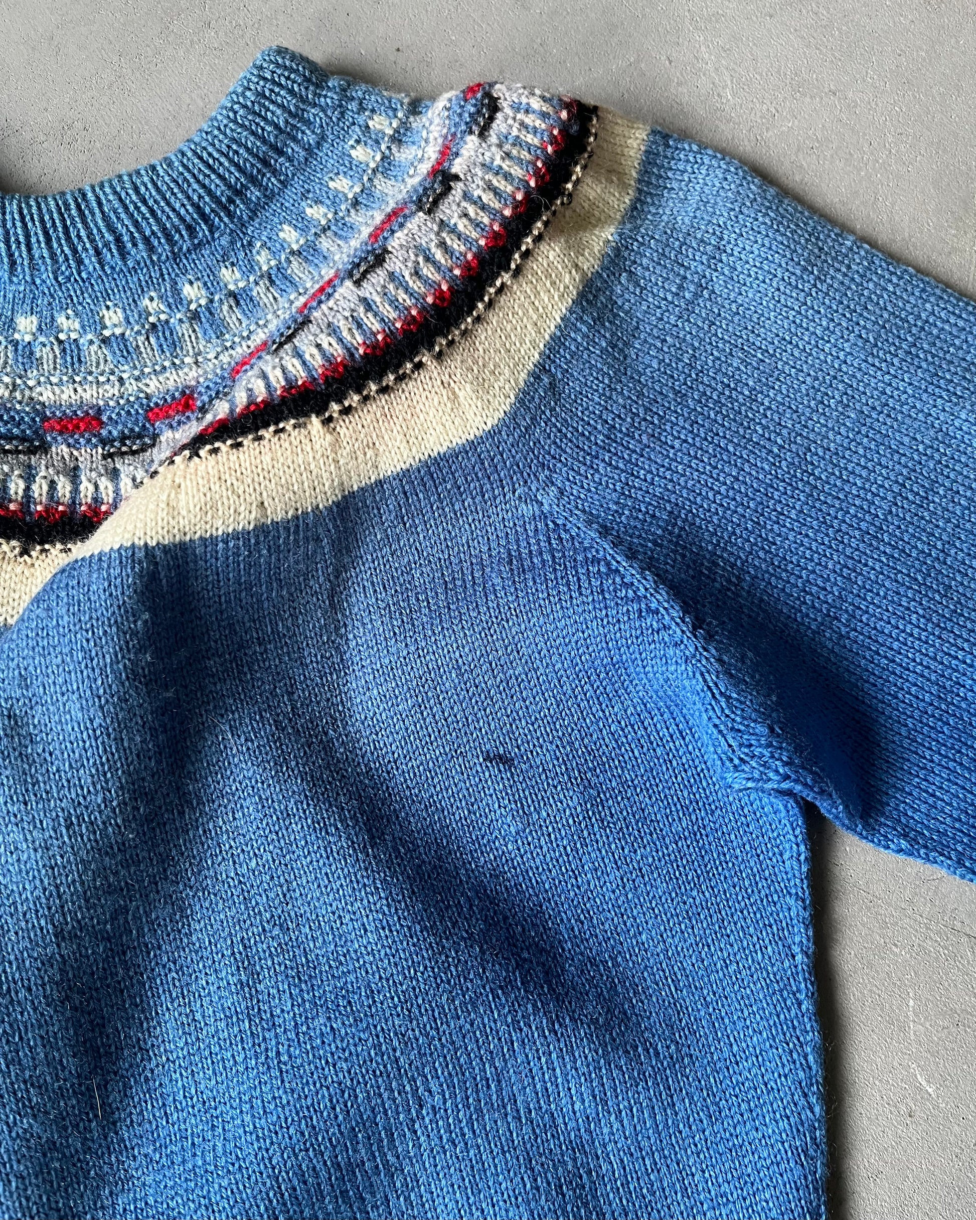 1970s - Faded Blue Nordic Sweater - XS