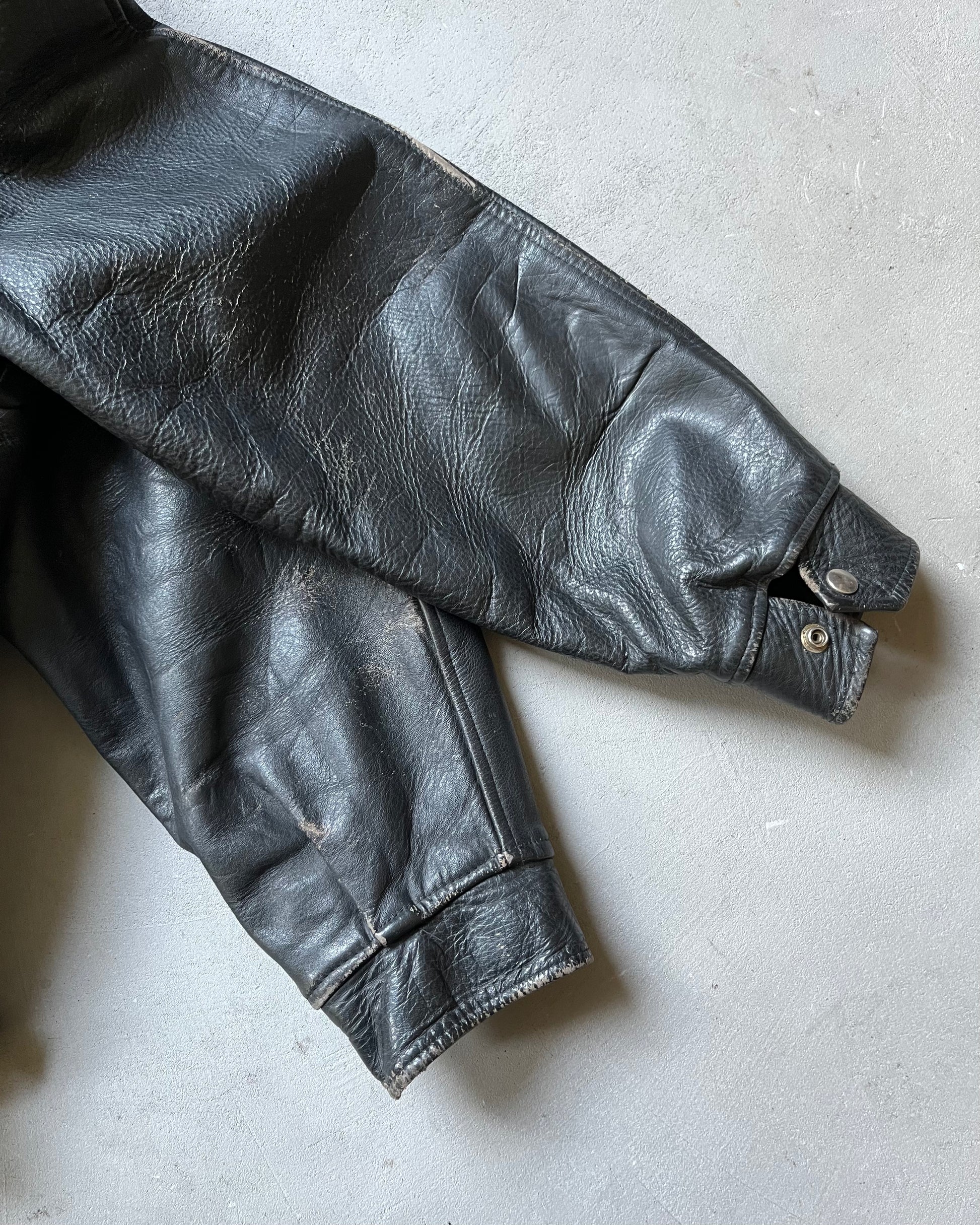 1980s - Black Motorcycle Leather Jacket - L