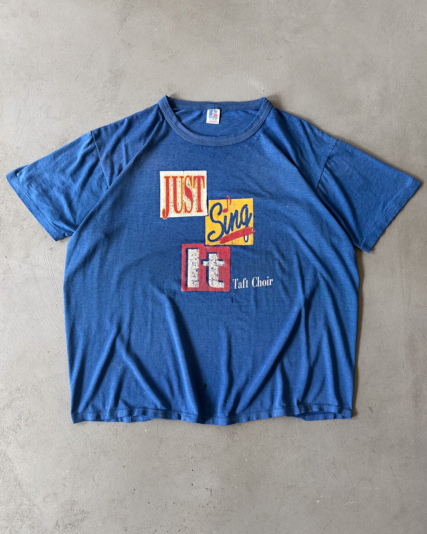 1980s - Distressed Blue Just Sing It T-Shirt - L/XL