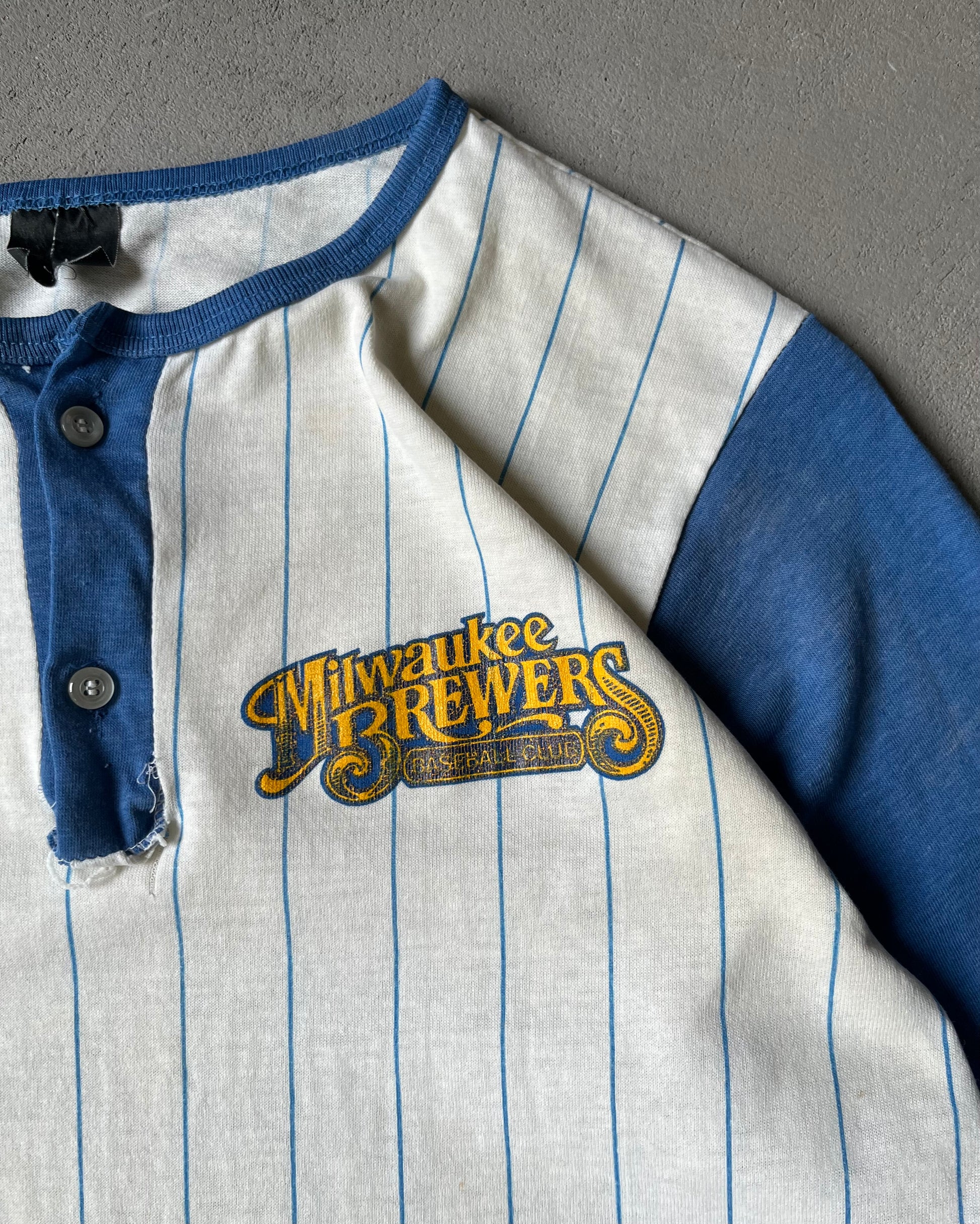 1980s - Distressed Blue/White Milwaukee Brewers Baseball T-Shirt - S