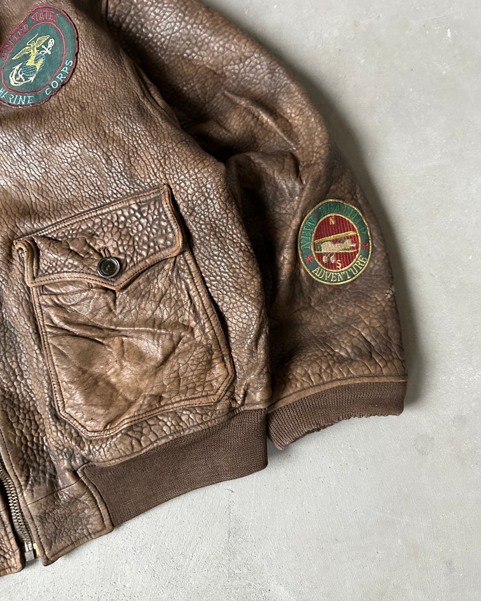 1980s - Distressed Brown Aviator Leather Jacket - L