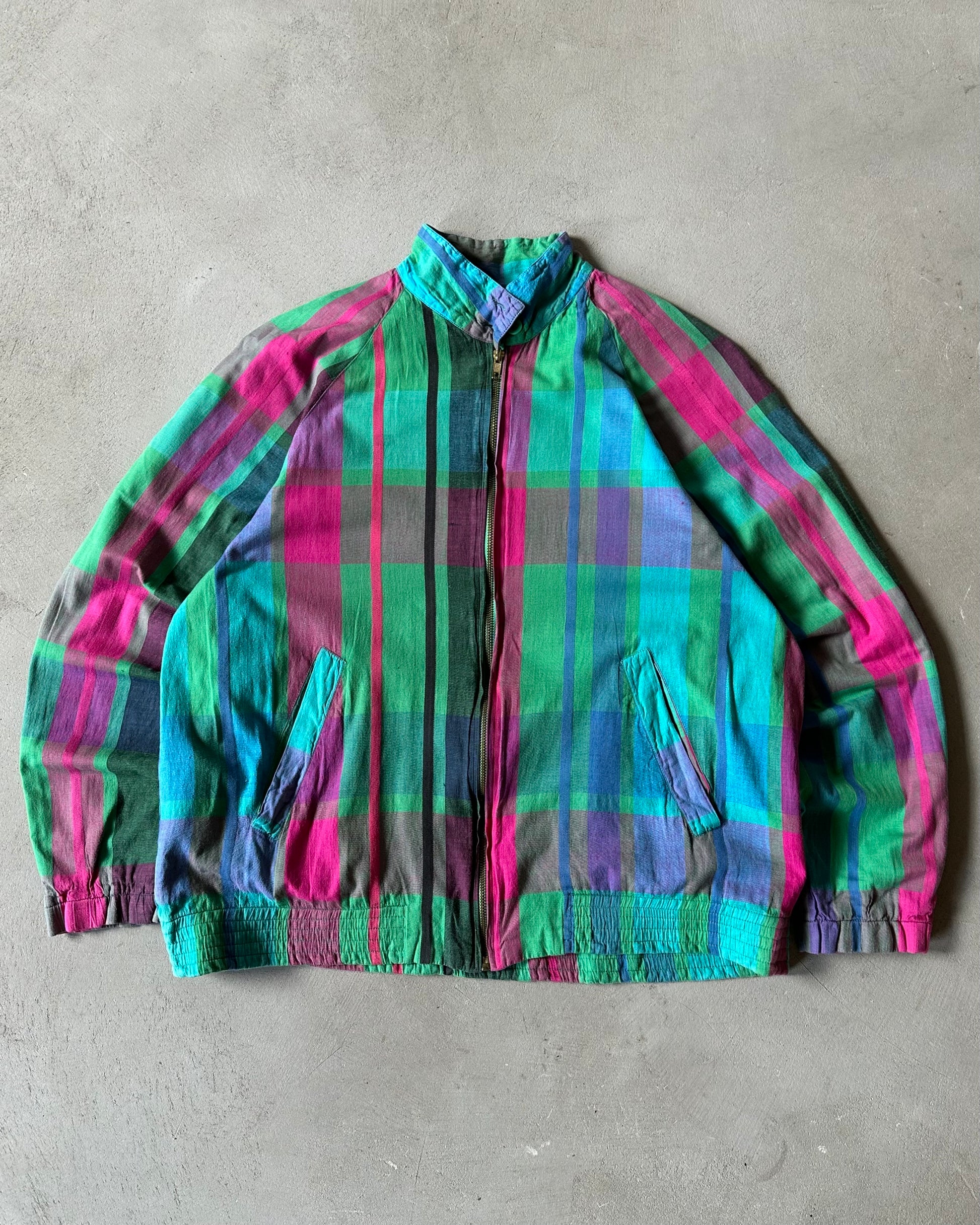 1980s - Green/Pink Lacoste Madras Harrington Jacket - S