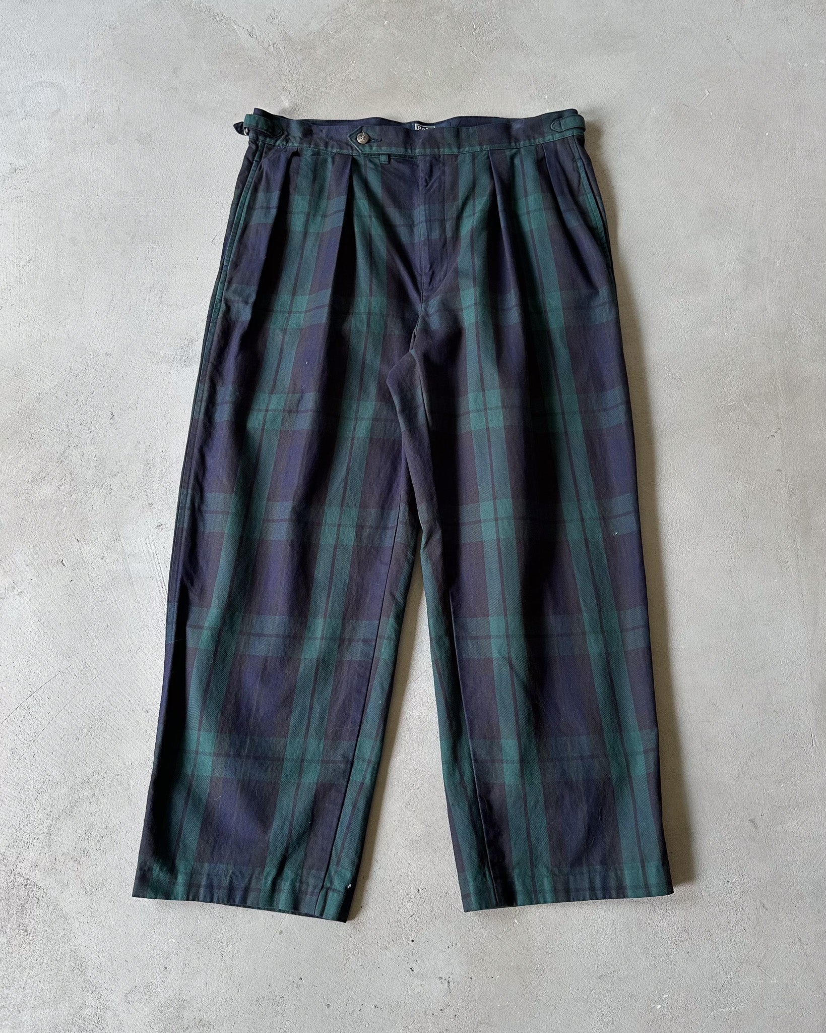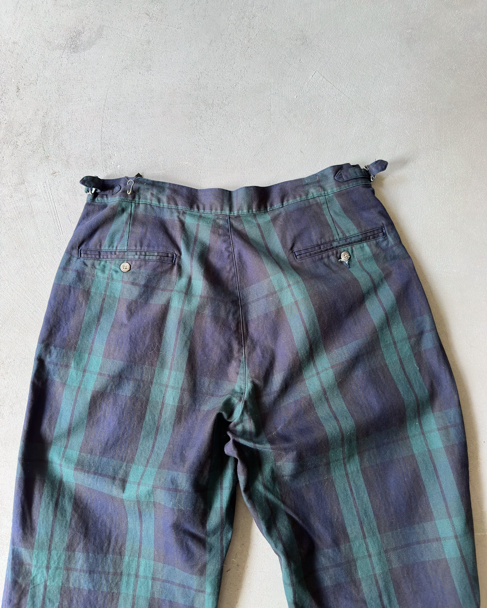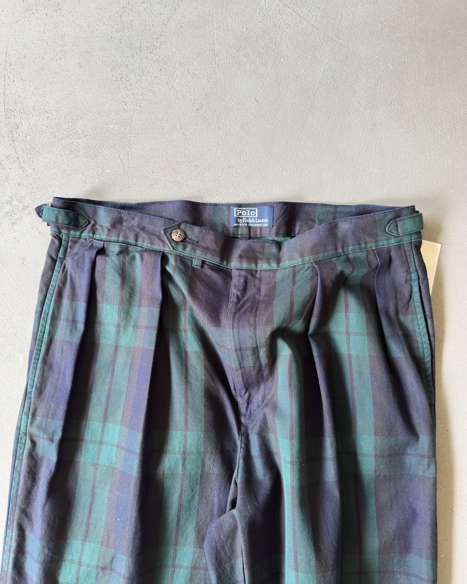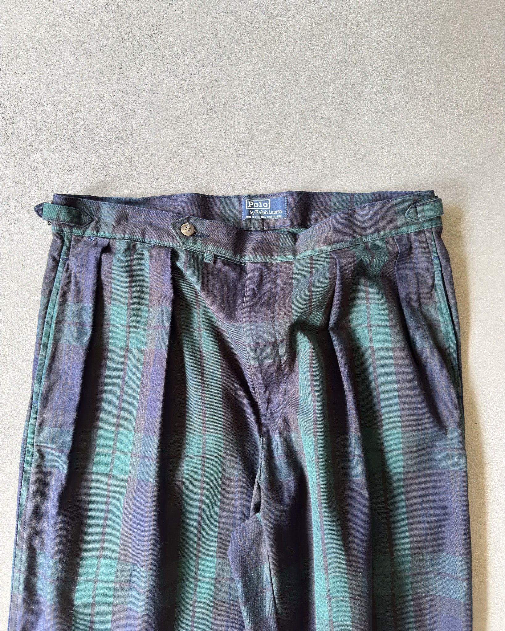1980s - Navy/Green Polo RL Plaid Trousers - 33x26