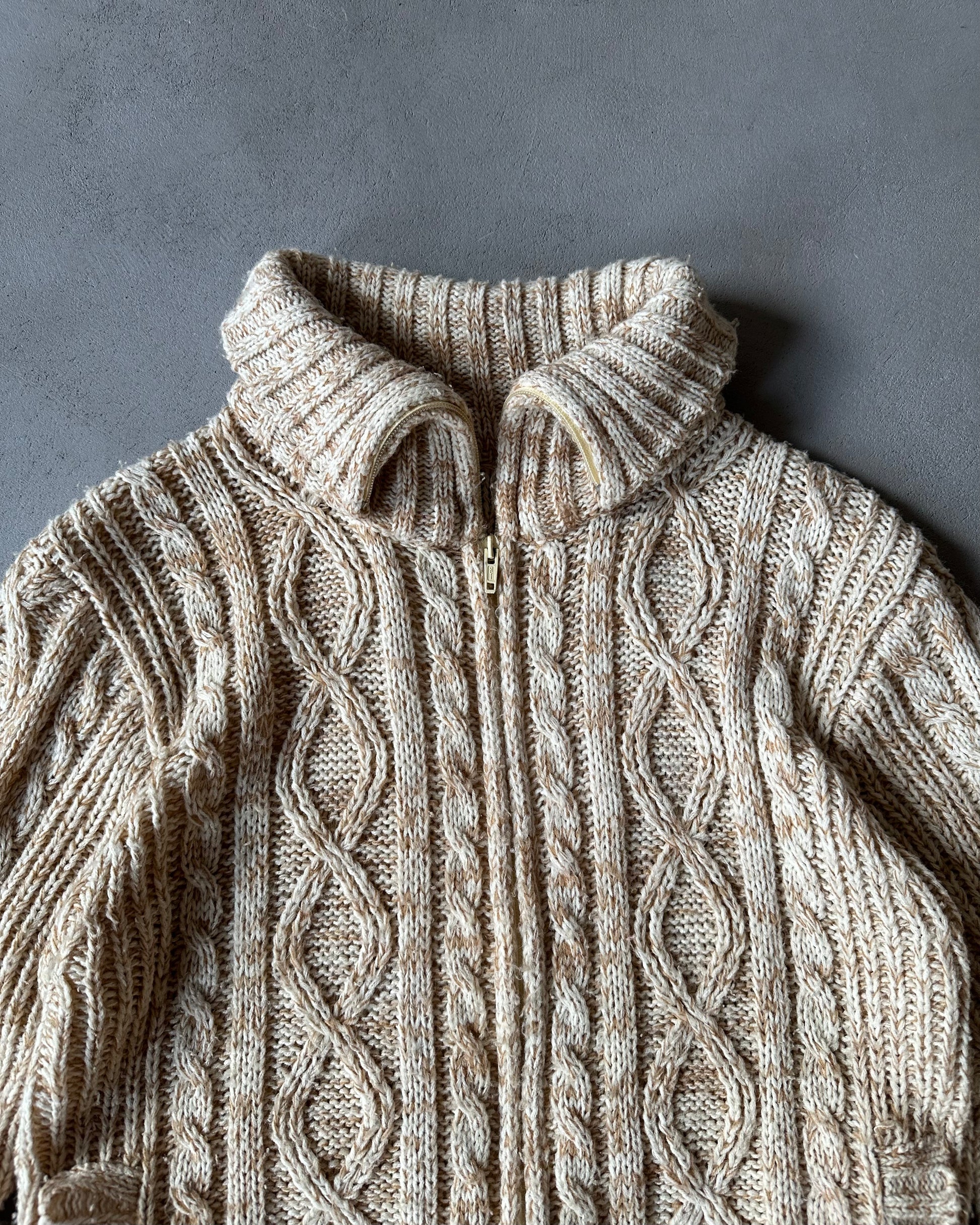 1980s - Oatmeal Cableknit Zip Up Sweater - S