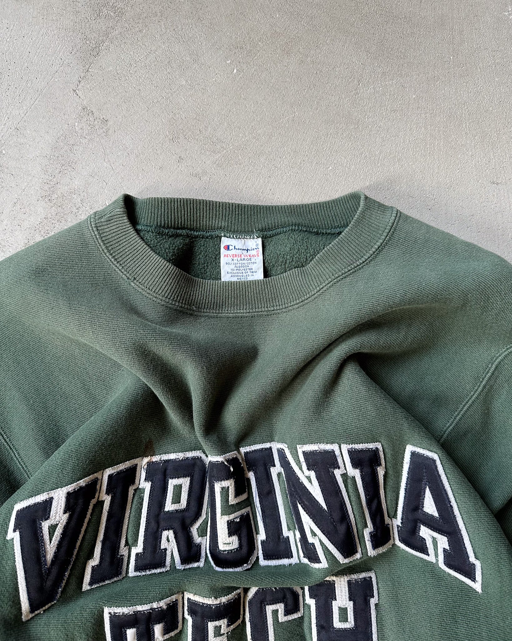 1990s - Distressed Green VT Champion RW Crewneck - XL