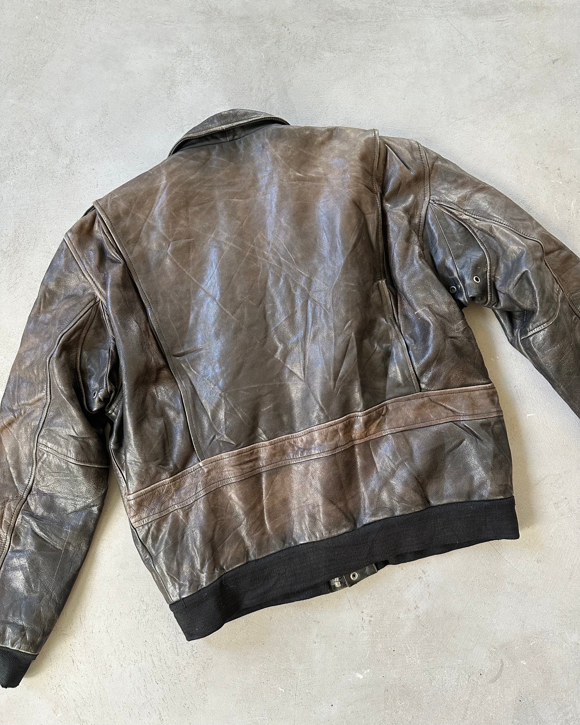 1990s - Faded Brown Aviator Leather Jacket - XL