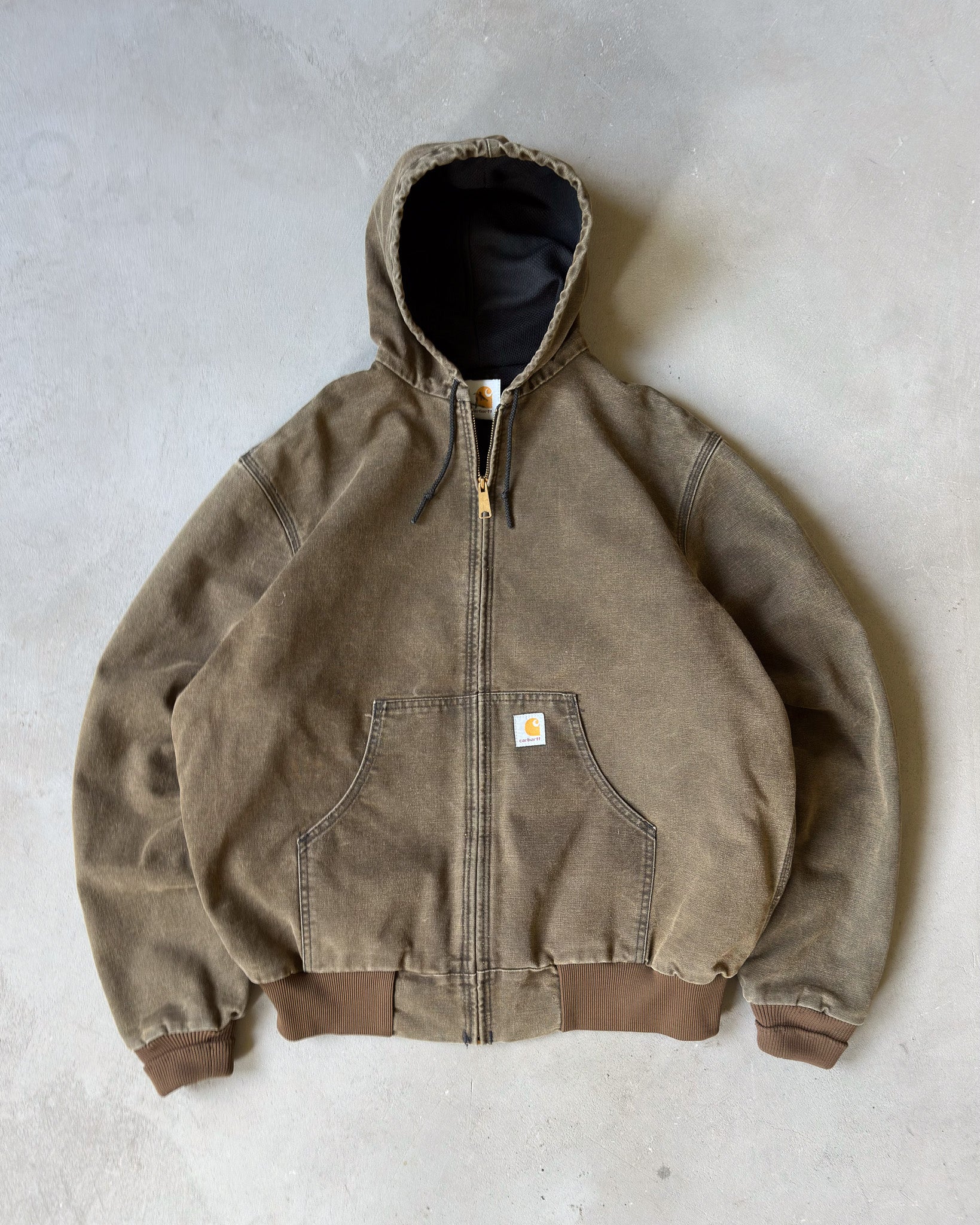 1990s - Faded Brown Carhartt Hooded Jacket - L/XL