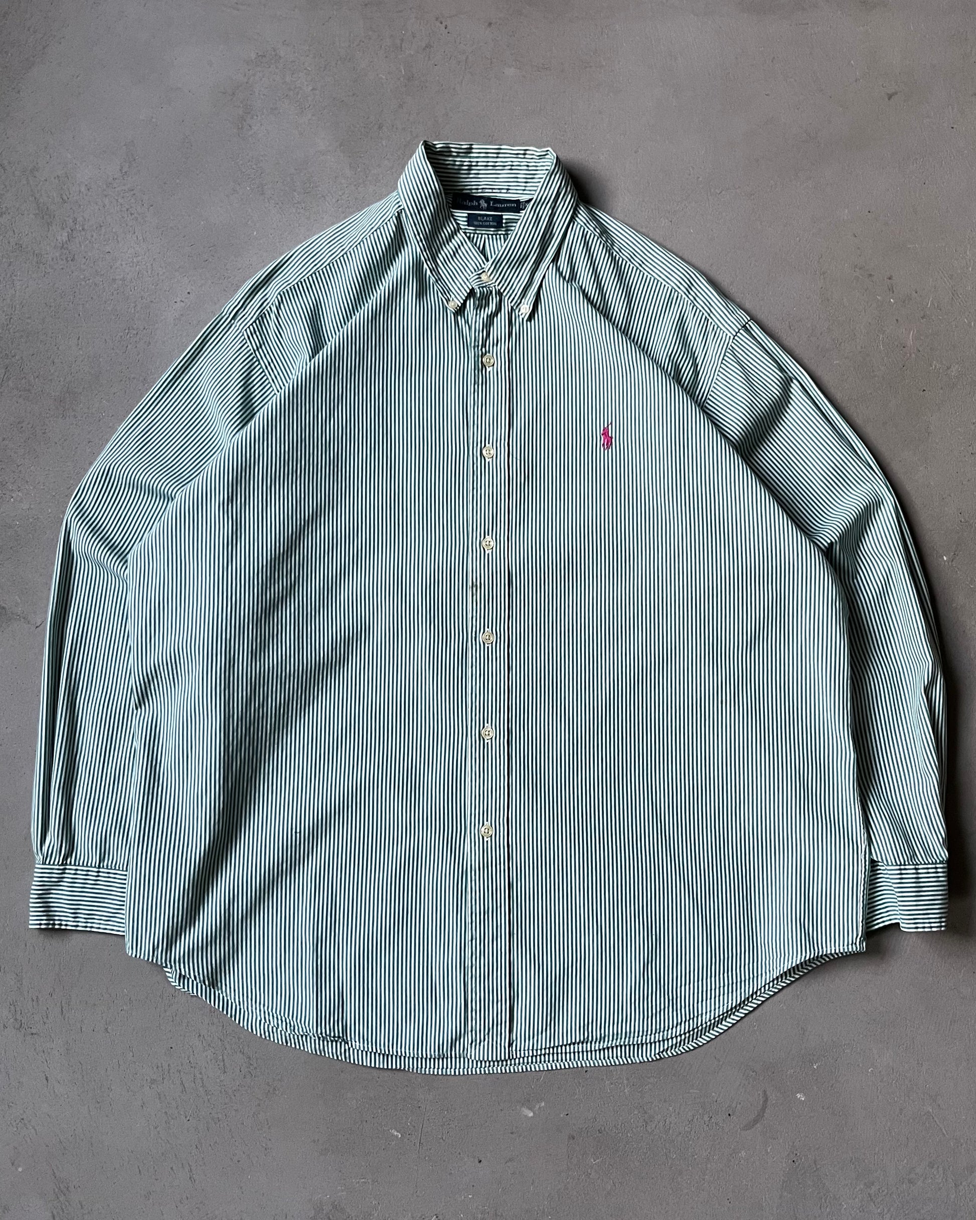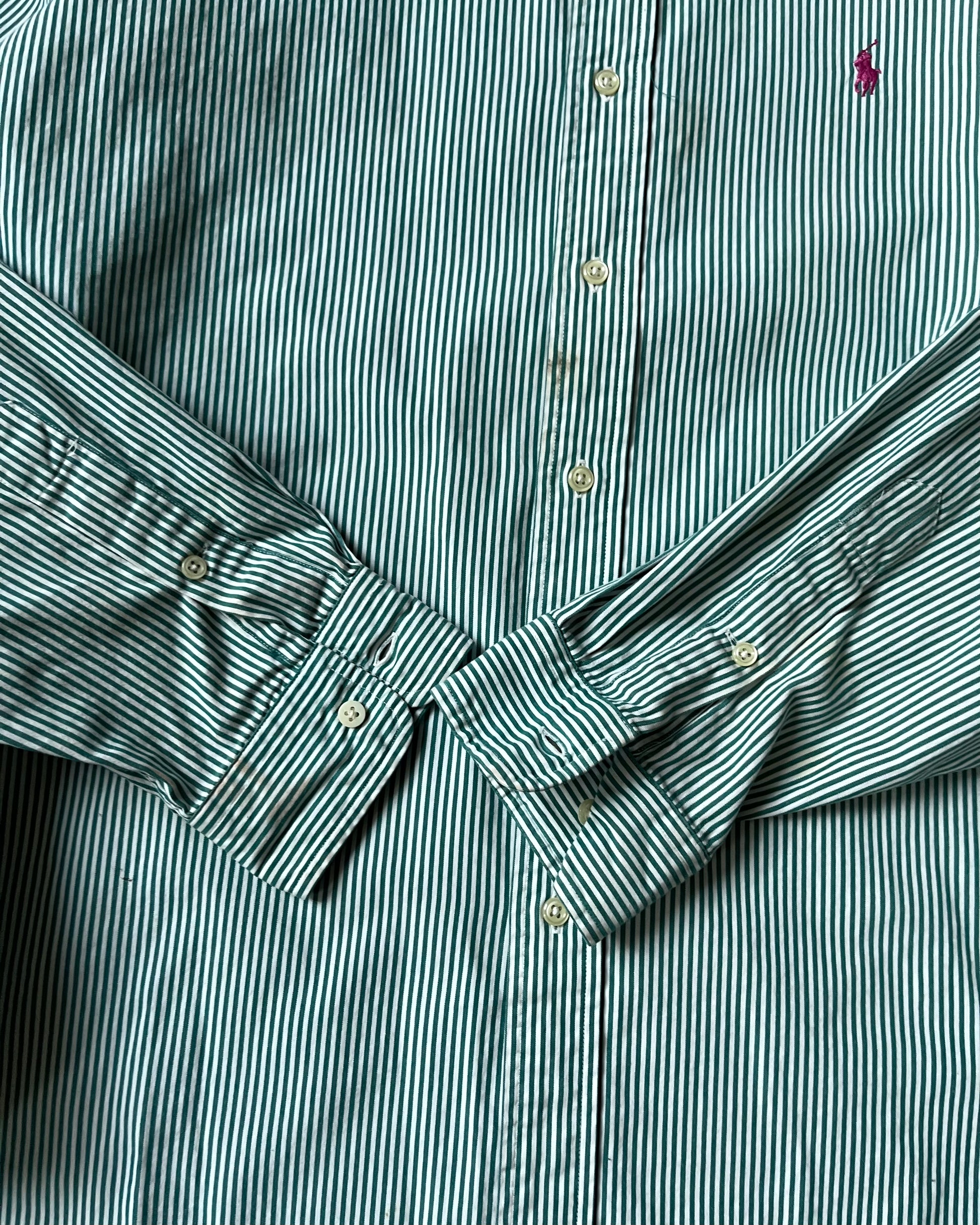 1990s - Green/White Ralph Lauren Striped Blake Shirt - XL
