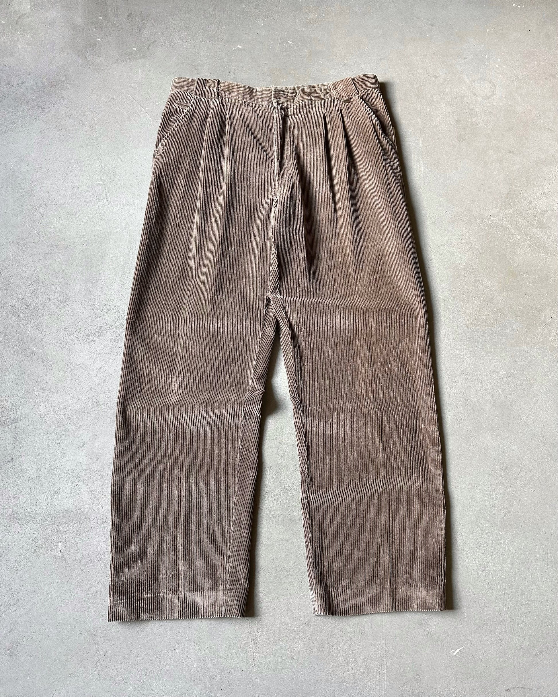 1990s - Light Brown Pleated Corduroy Pants - 37x32