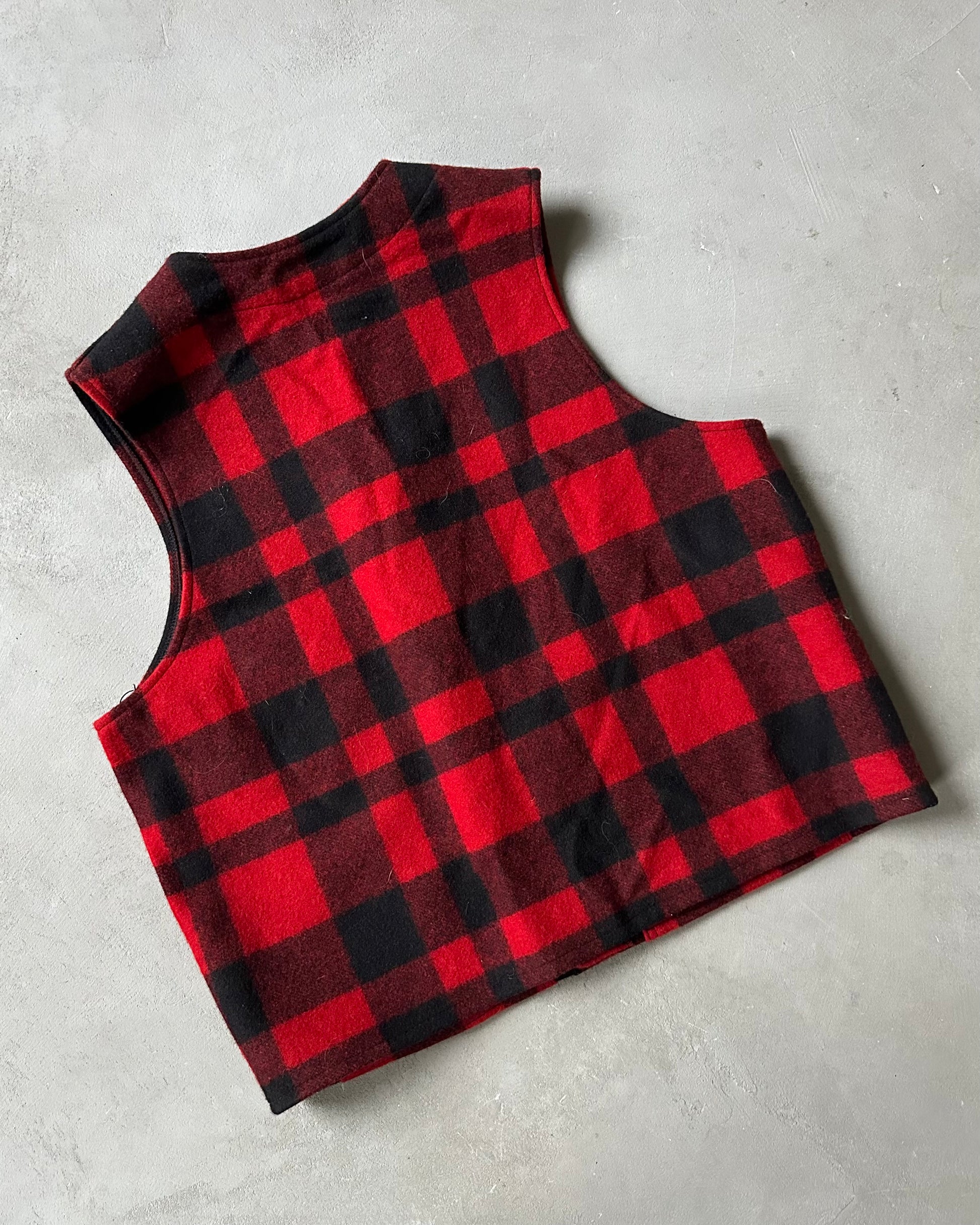 1990s - Red/Black Filson Plaid Wool Vest - L/XL