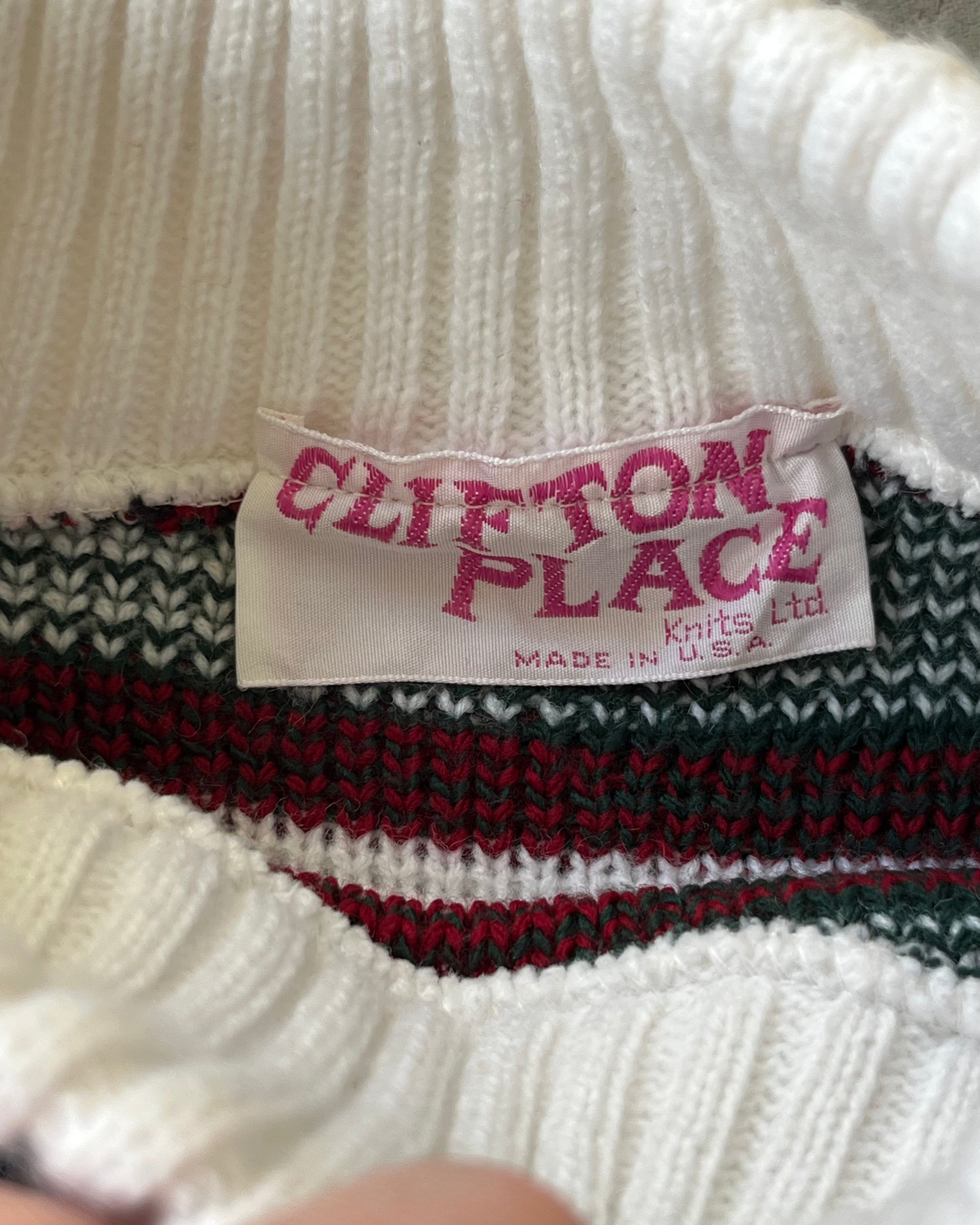 1990s - Red/Green Aztec Women's Sweater - (W)XL