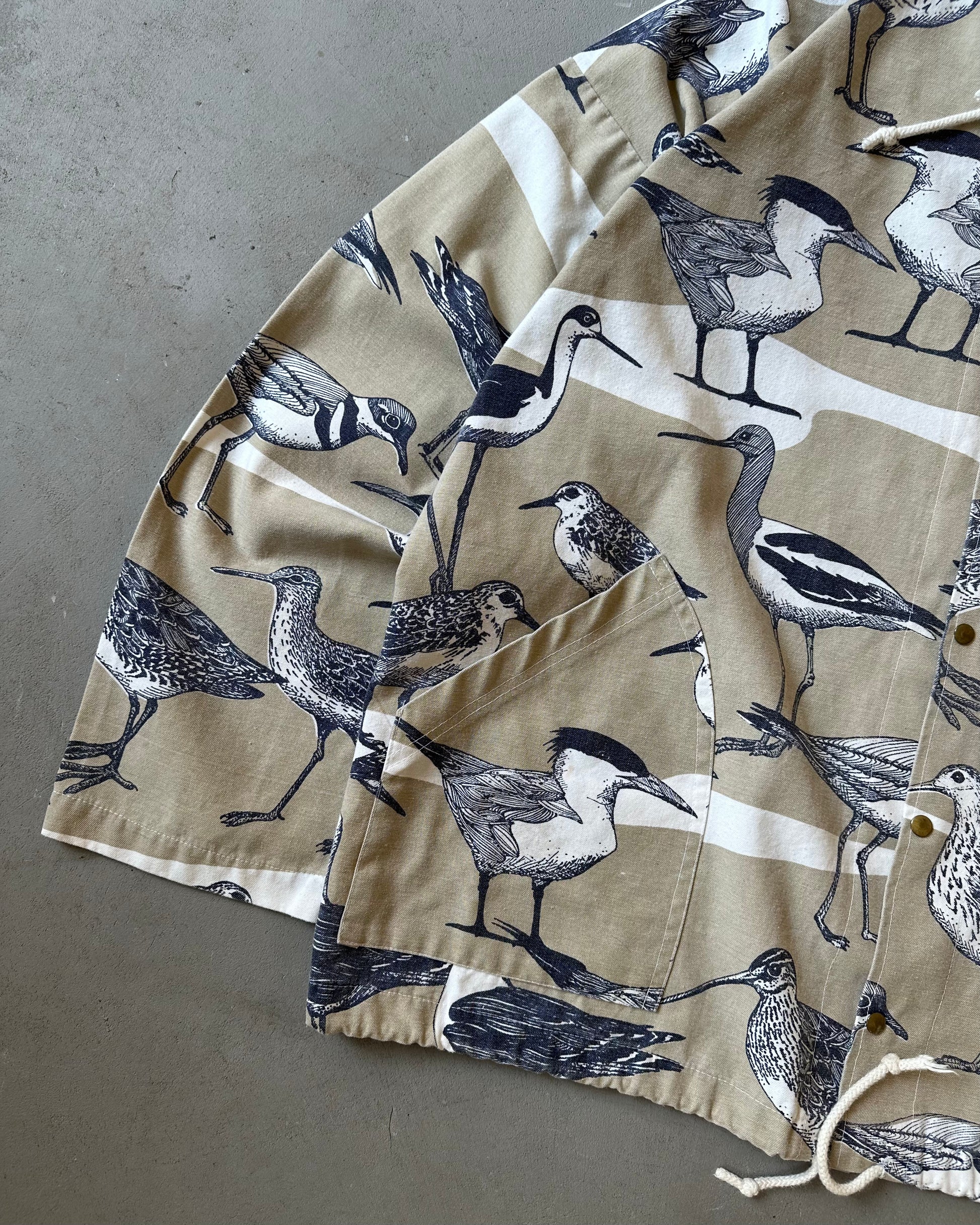 1990s - Tan/Navy BIRDS Light Hooded Jacket - XL