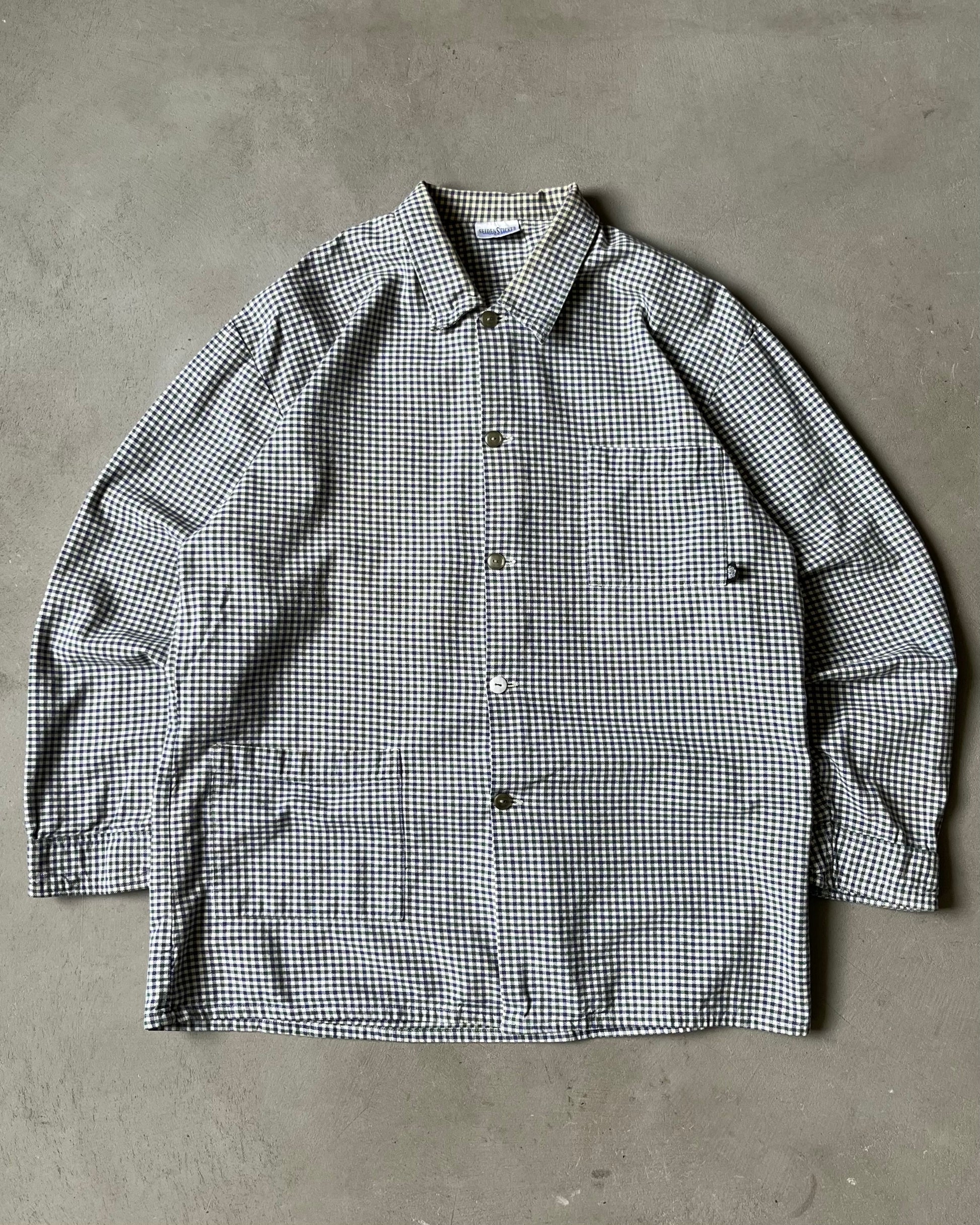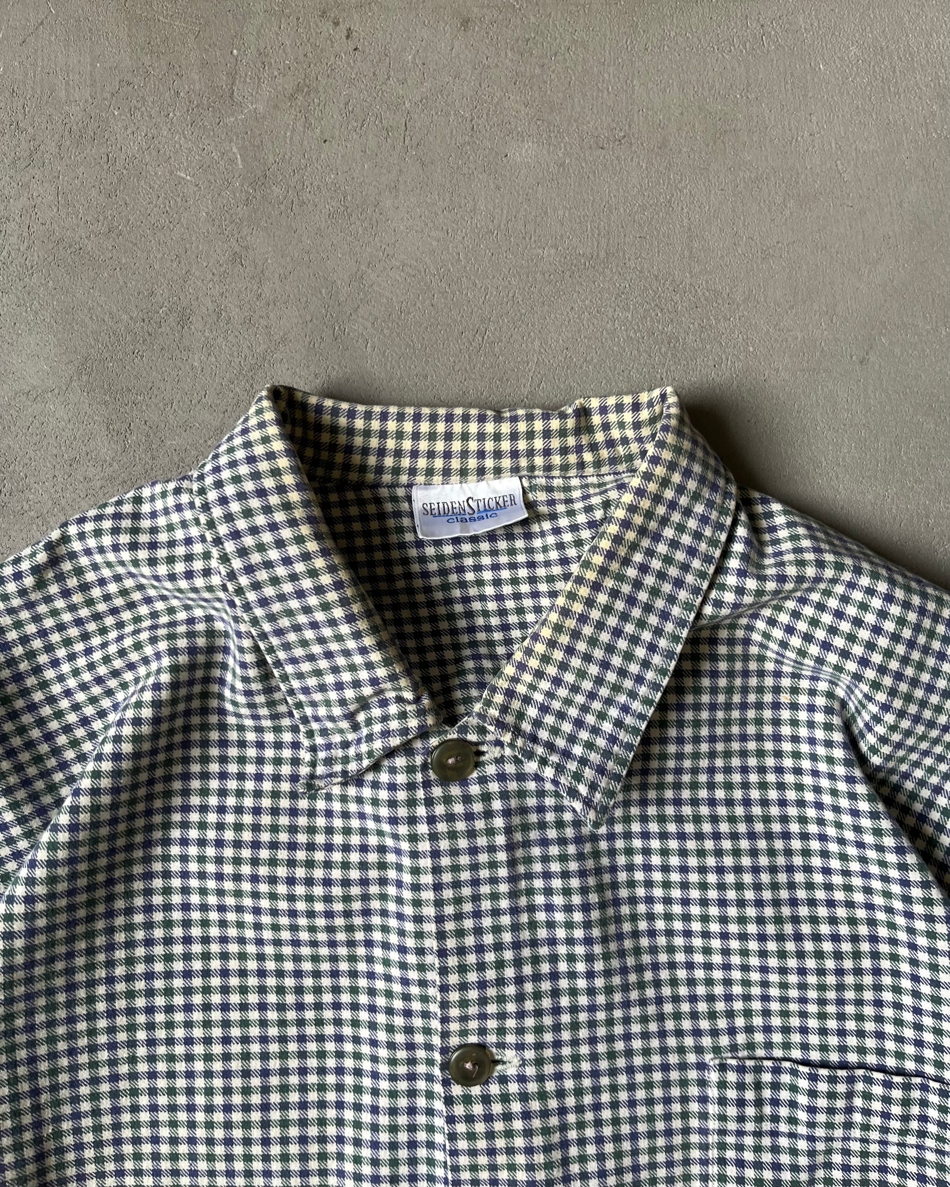 1990s - White/Green Plaid Chore Overshirt - L