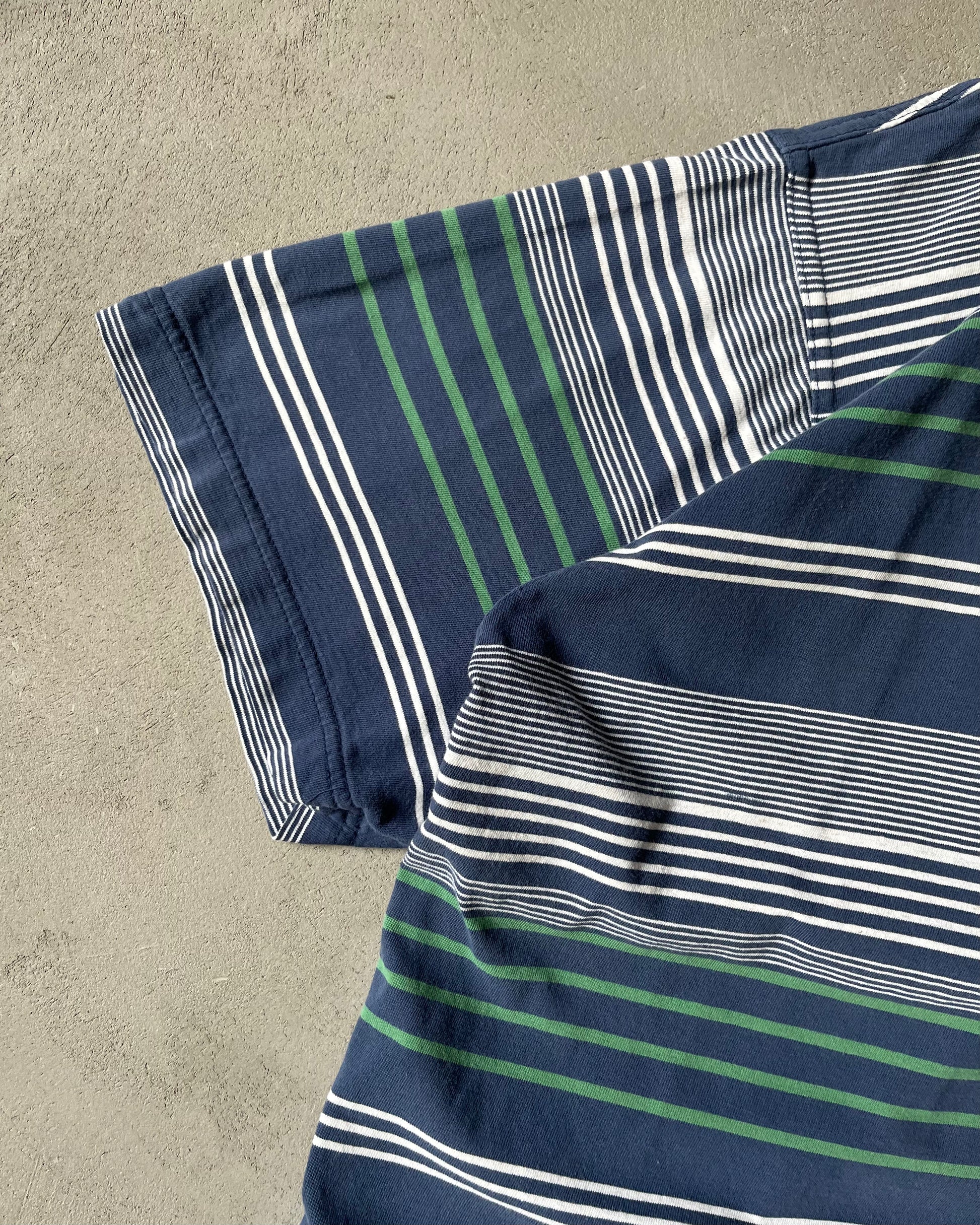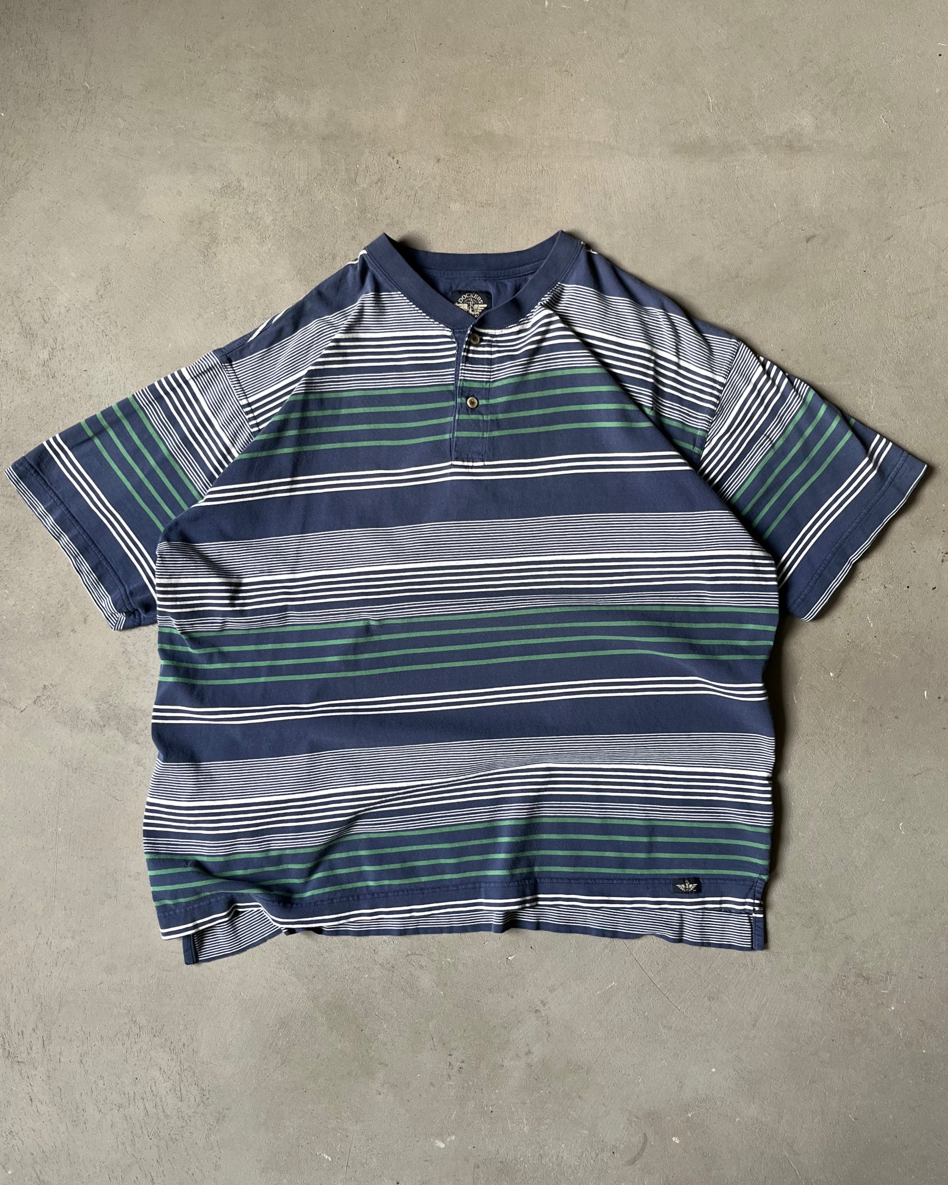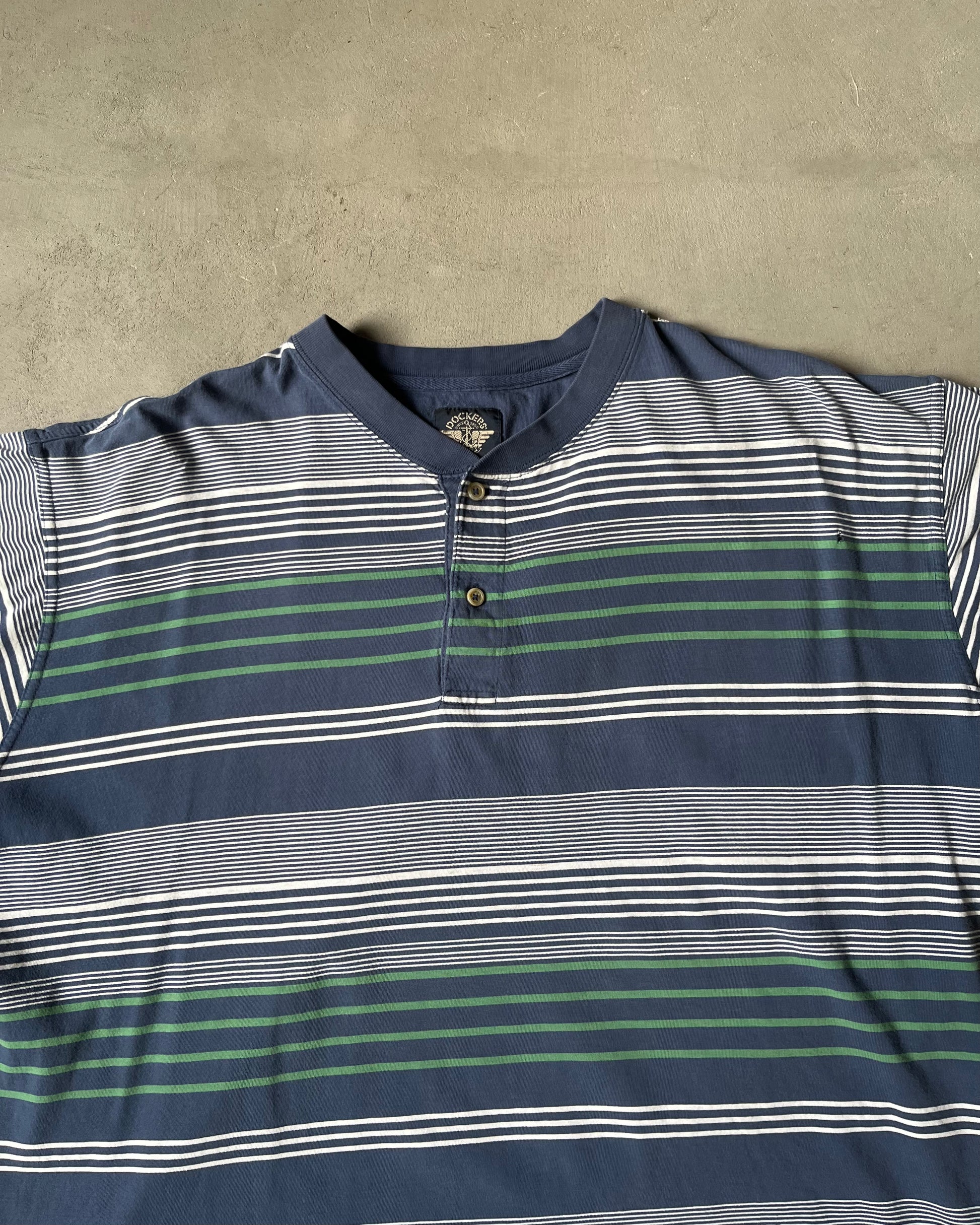 2000s - Distressed Navy Striped Henley T-Shirt -